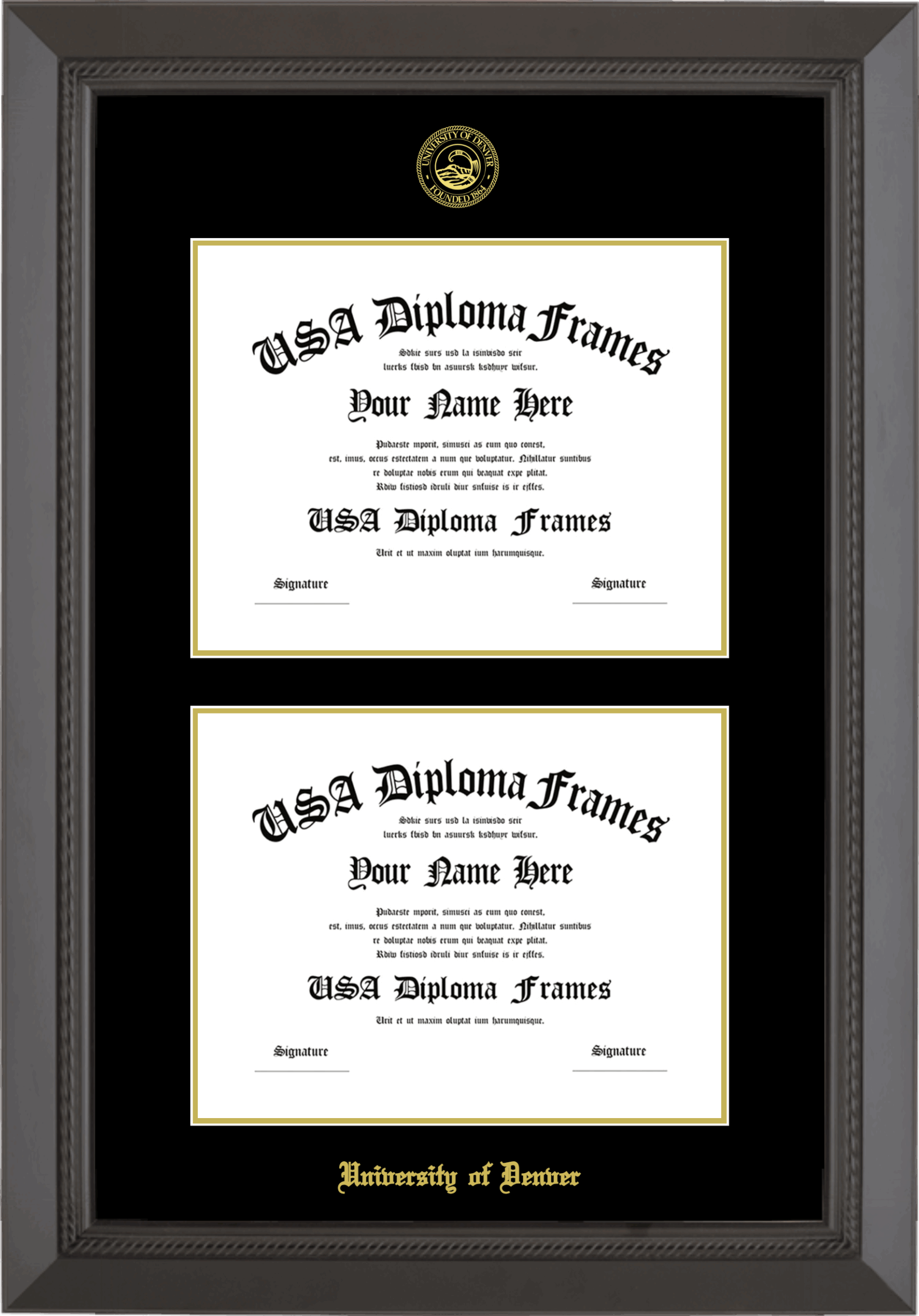 University of Denver Double Diploma Frame – Double Document – Black Rope – Black and Gold Mat