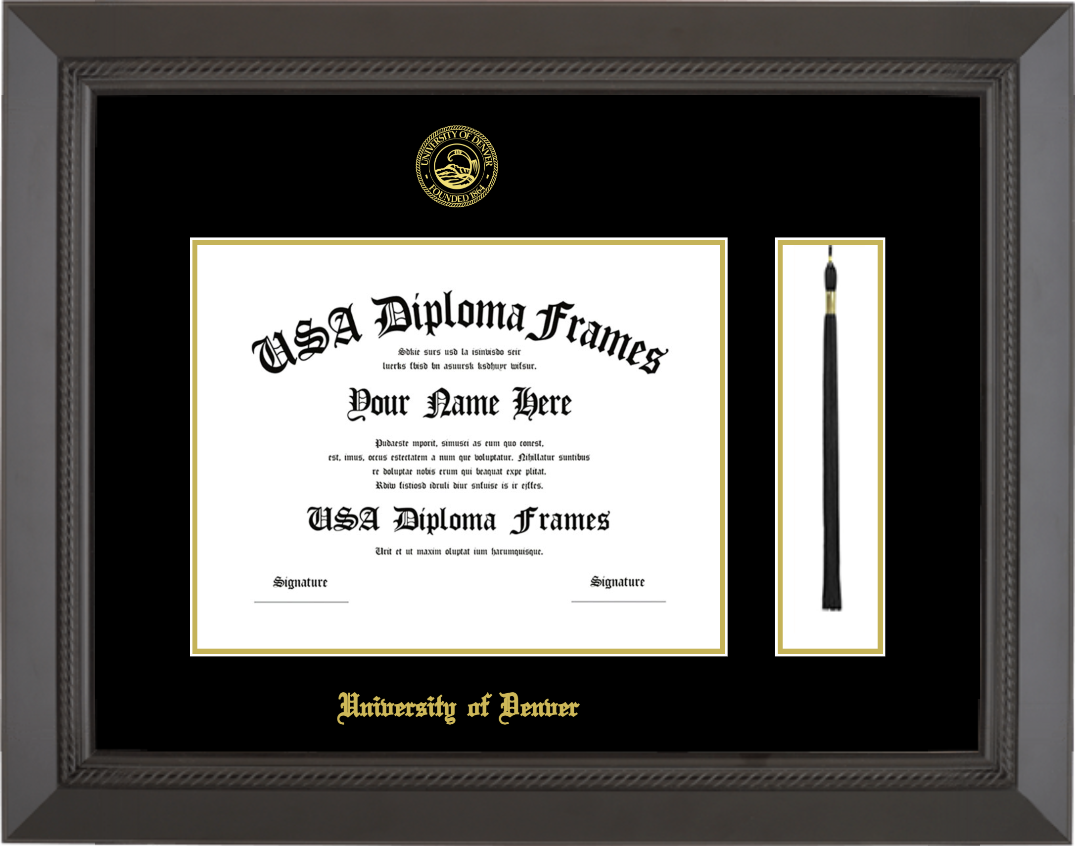 University of Denver Diploma Frame with Tassel – Black Rope – Black and Gold Mat