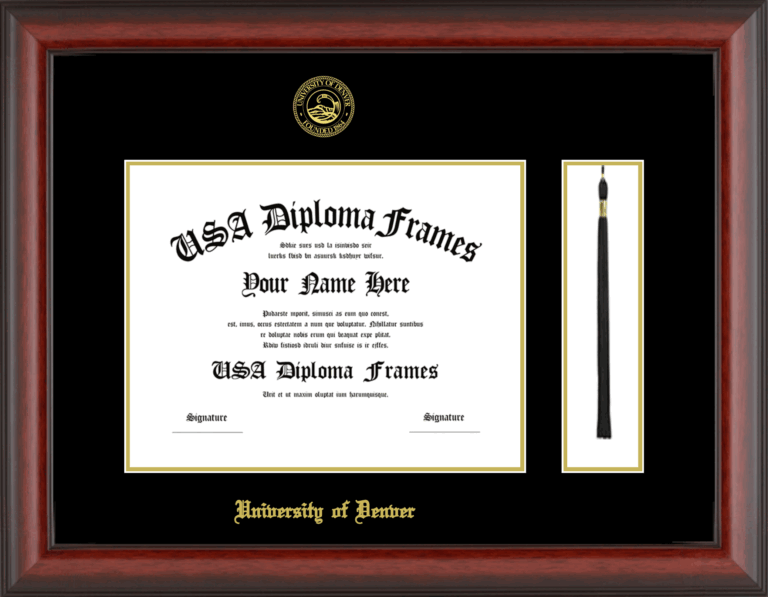University of Denver Diploma Frame with Tassel – Cherry Mahogany Matte – Black and Gold Mat