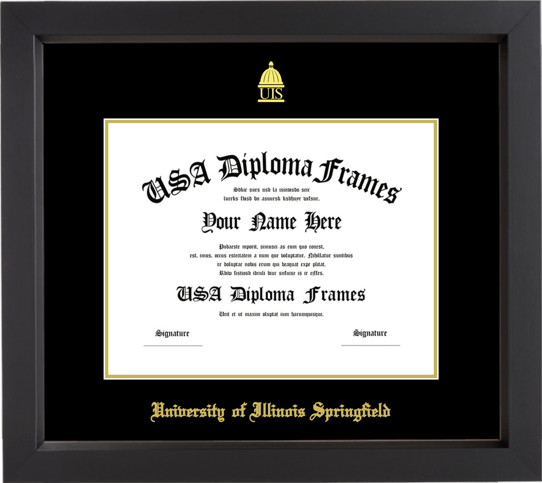 University of Illinois at Springfield Diploma Frame – Black Matte – Black and Gold Mat