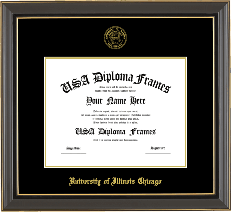 University of Illinois Chicago Diploma Frame – Black Gold Trim Glossy – Black and Gold Mat