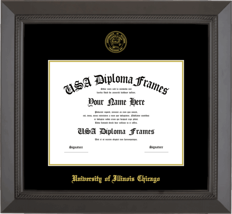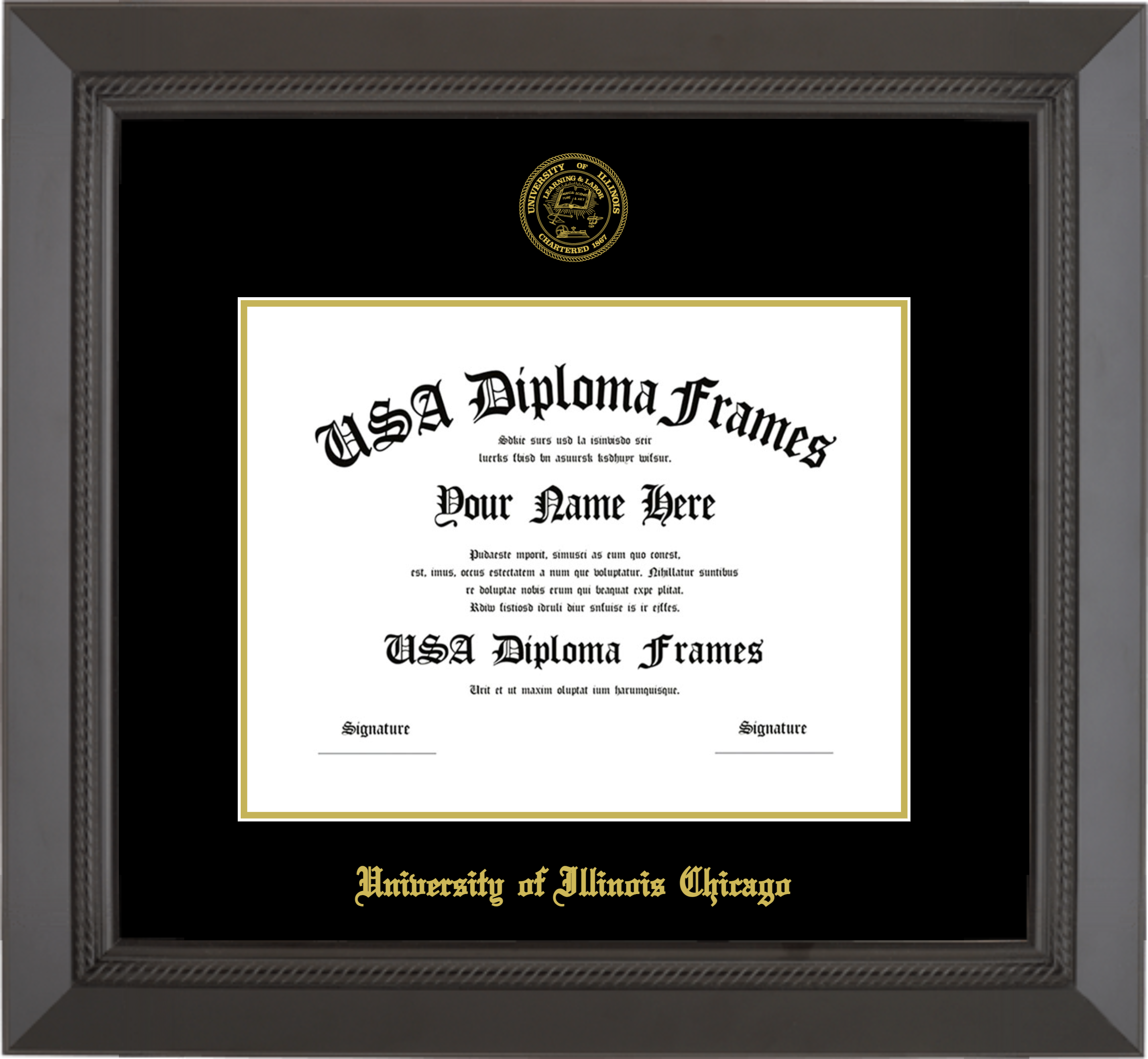 University of Illinois Chicago Diploma Frame – Black Rope – Black and Gold Mat