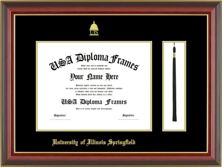Want to explore more styles? Browse our full range of diploma frame layouts, or visit the University of Illinois Springfield to view options available for your school. Looking for a fully personalized design? Try our custom Frame Builder and create a frame that’s uniquely yours.