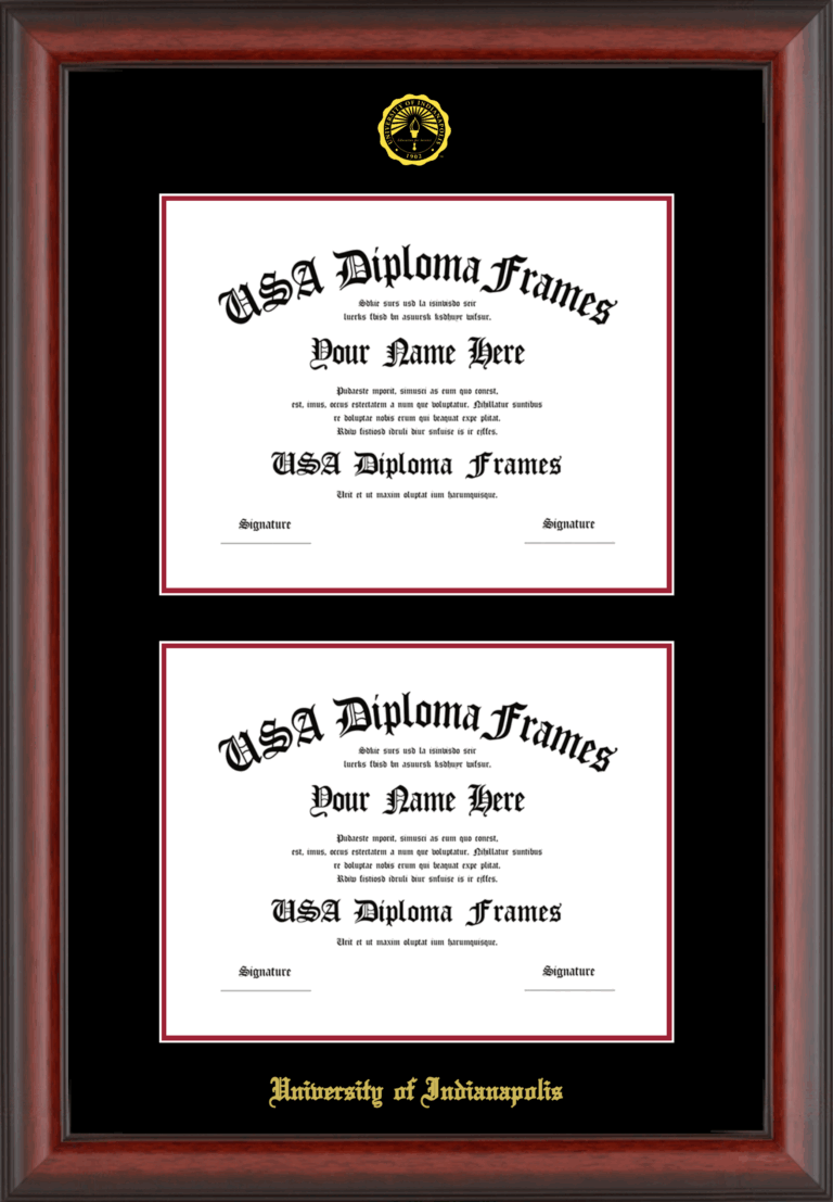 Want to explore more styles? Browse our full range of diploma frame layouts, or visit the University of Indianapolis to view options available for your school. Looking for a fully personalized design? Try our custom Frame Builder and create a frame that’s uniquely yours.