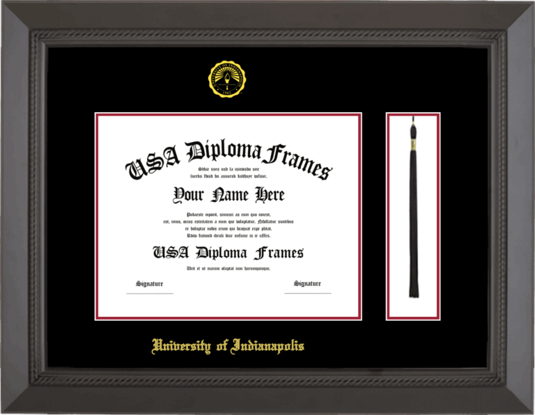 University of Indianapolis Diploma Frame with Tassel – Black Rope – Black and Crimson Mat