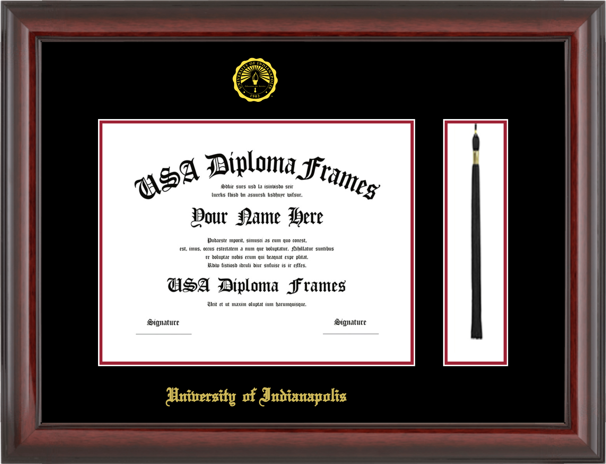 University of Indianapolis Diploma Frame with Tassel – Cherry Mahogany Glossy – Black and Crimson Mat