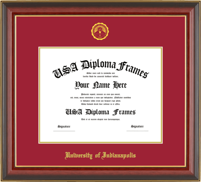 Want to explore more styles? Browse our full range of diploma frame layouts, or visit the University of Indianapolis to view options available for your school. Looking for a fully personalized design? Try our custom Frame Builder and create a frame that’s uniquely yours.