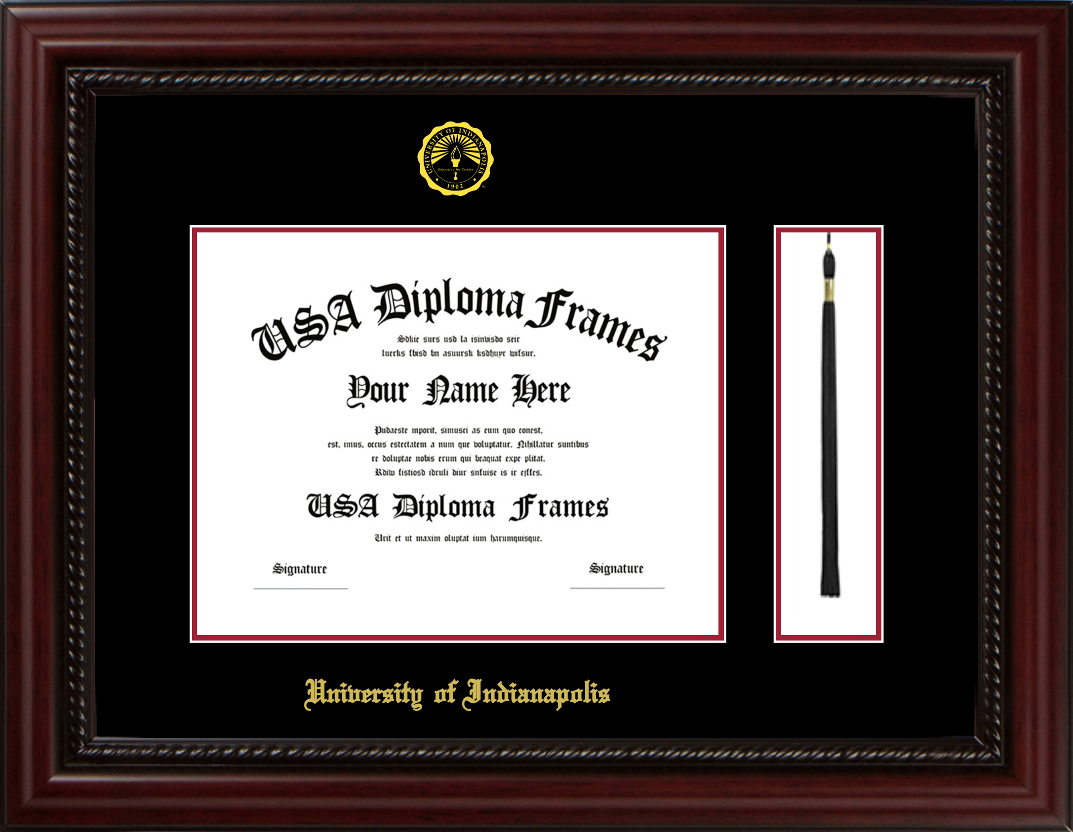 University of Indianapolis Diploma Frame with Tassel – Executive Cherry Rope – Black and Crimson Mat