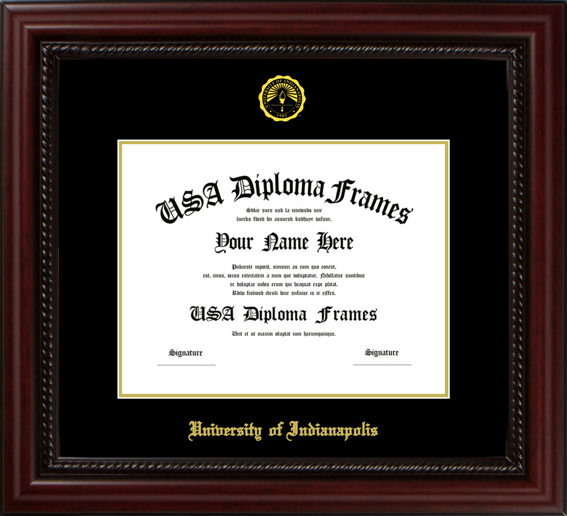University of Indianapolis Diploma Frame – Executive Cherry Rope – Black and Gold Mat