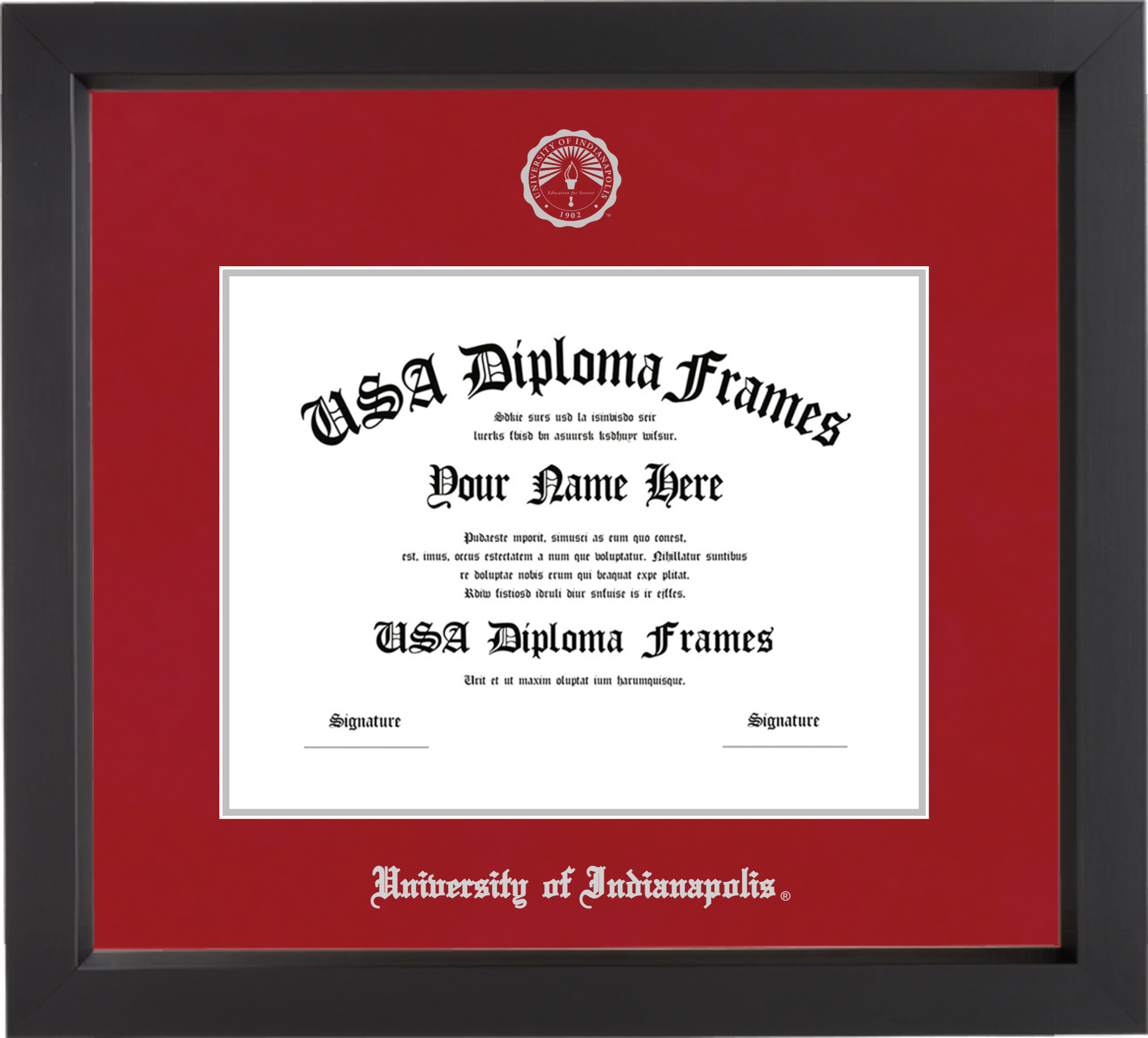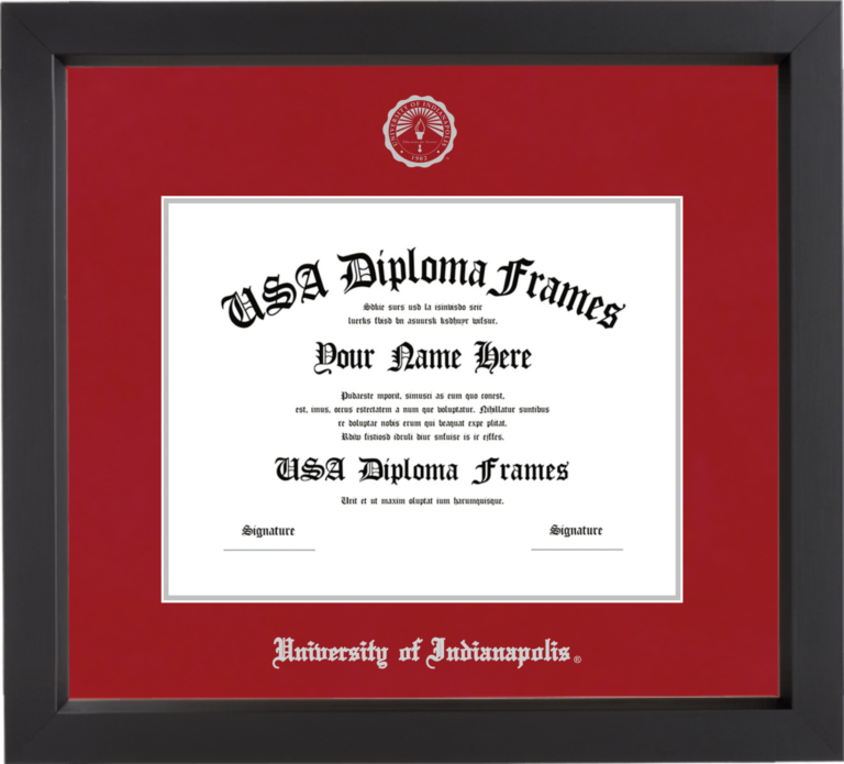 Want to explore more styles? Browse our full range of diploma frame layouts, or visit the University of Indianapolis to view options available for your school. Looking for a fully personalized design? Try our custom Frame Builder and create a frame that’s uniquely yours.
