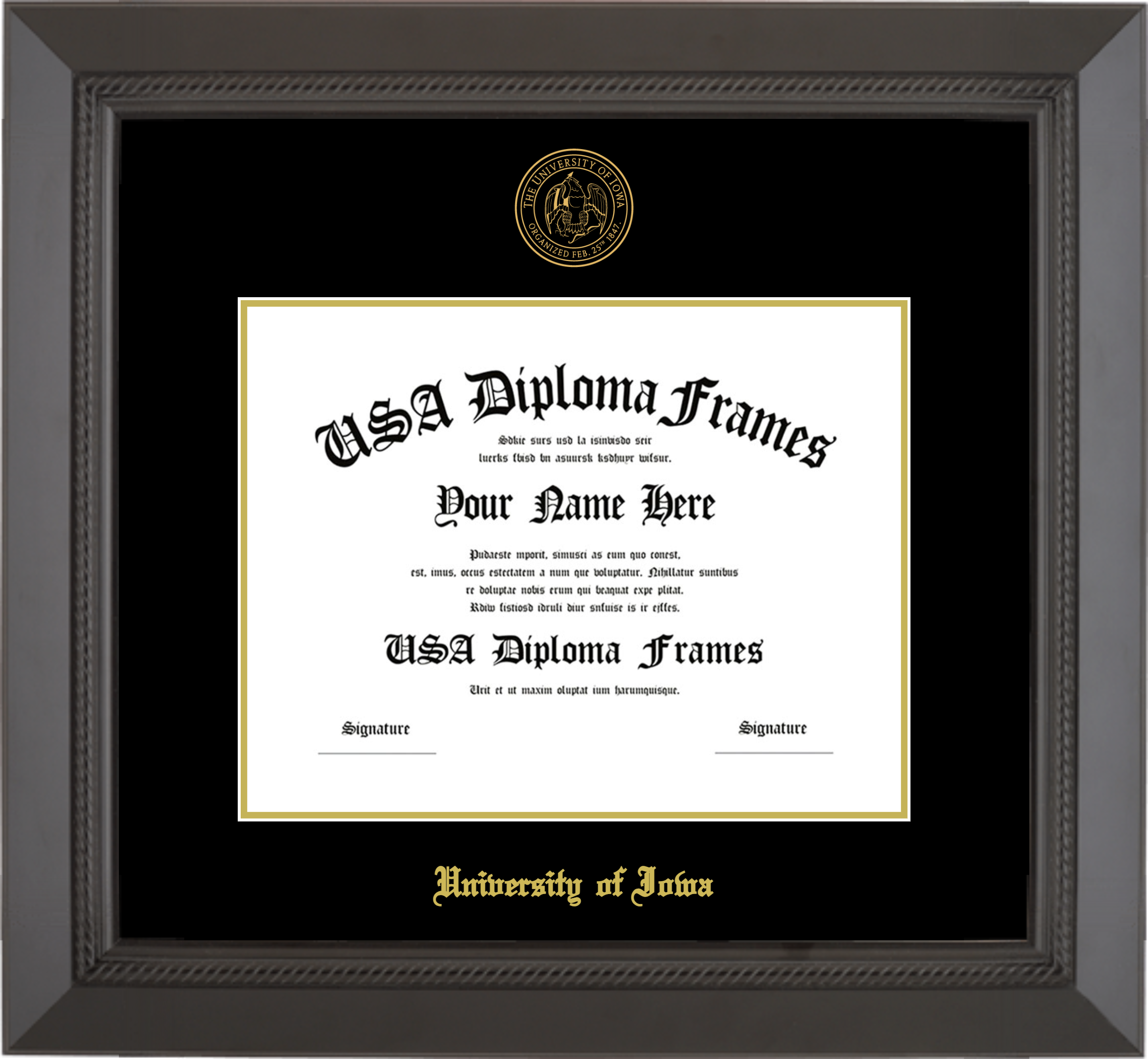 University of Iowa Diploma Frame – Black Rope – Black and Gold Mat