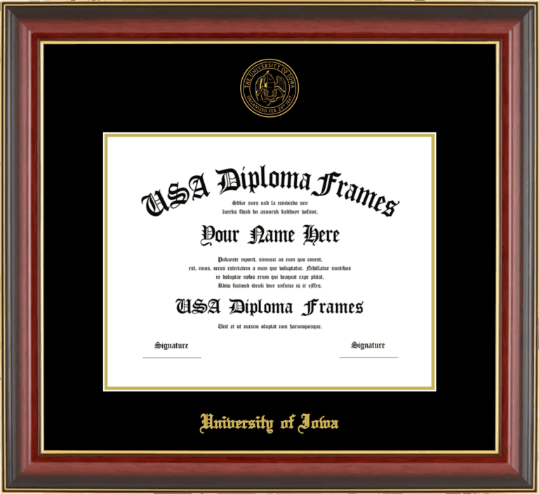 Want to explore more styles? Browse our full range of diploma frame layouts, or visit the University of Iowa to view options available for your school. Looking for a fully personalized design? Try our custom Frame Builder and create a frame that’s uniquely yours.