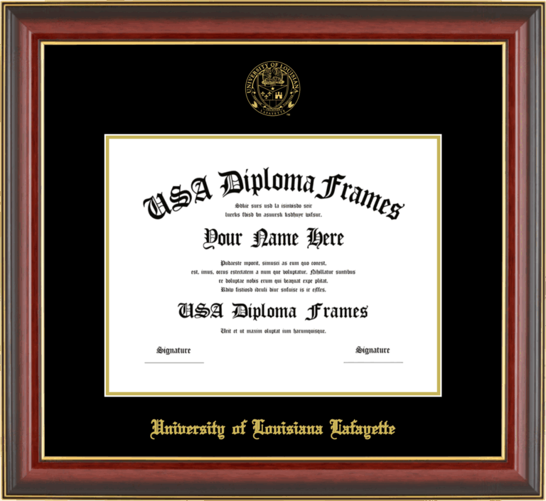 University of Louisiana at Lafayette – Diploma Frame – Cherry Mahogany Gold Trim Glossy – Black and Gold Mat
