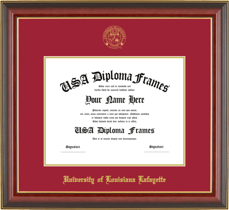 Want to explore more styles? Browse our full range of diploma frame layouts, or visit the University of Louisiana at Lafayette to view options available for your school. Looking for a fully personalized design? Try our custom Frame Builder and create a frame that’s uniquely yours.