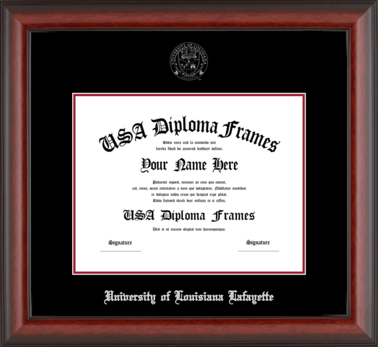 Want to explore more styles? Browse our full range of diploma frame layouts, or visit the University of Louisiana at Lafayette to view options available for your school. Looking for a fully personalized design? Try our custom Frame Builder and create a frame that’s uniquely yours.