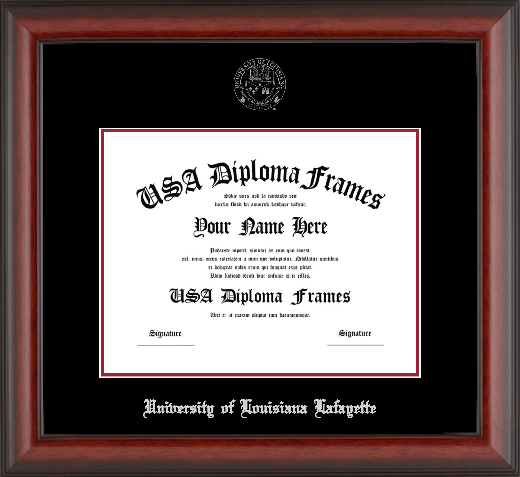 University of Louisiana at Lafayette Diploma Frame – Cherry Mahogany Matte – Black and Crimson Mat