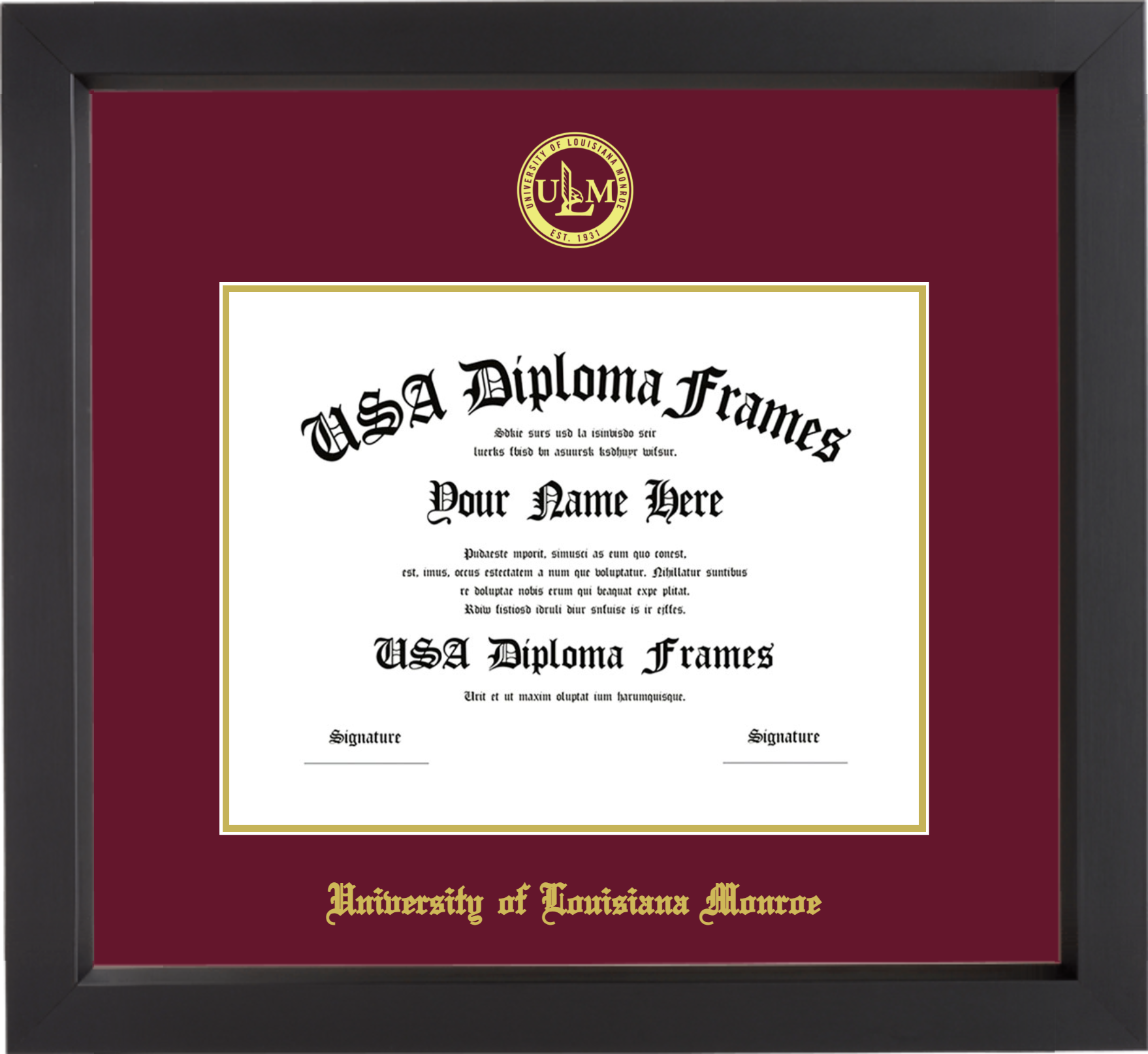 University of Louisiana at Monroe Diploma Frame – Black Matte – Maroon and Gold Mat