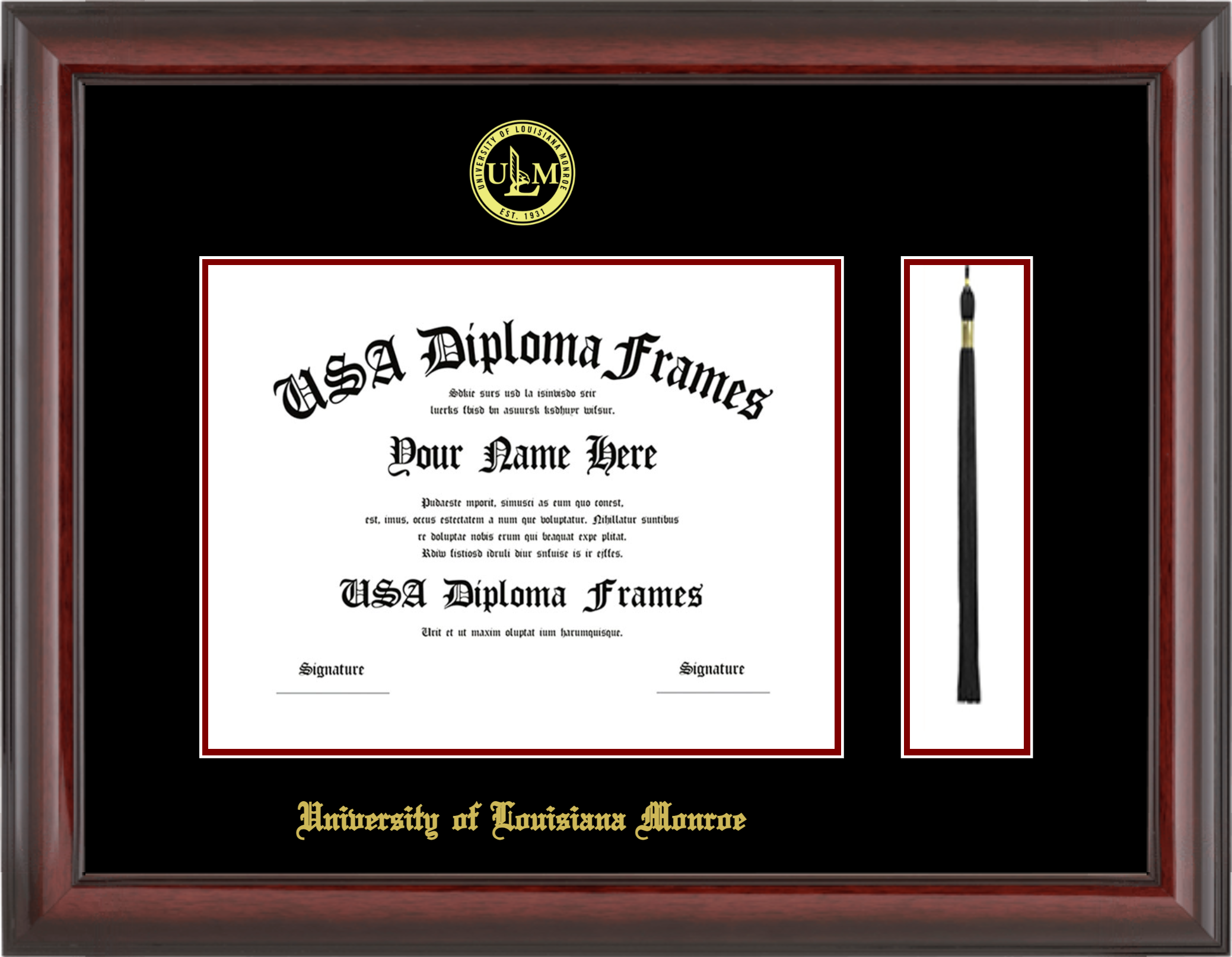 University of Louisiana at Monroe Diploma Frame with Tassel – Cherry Mahogany Glossy – Black and Maroon Mat