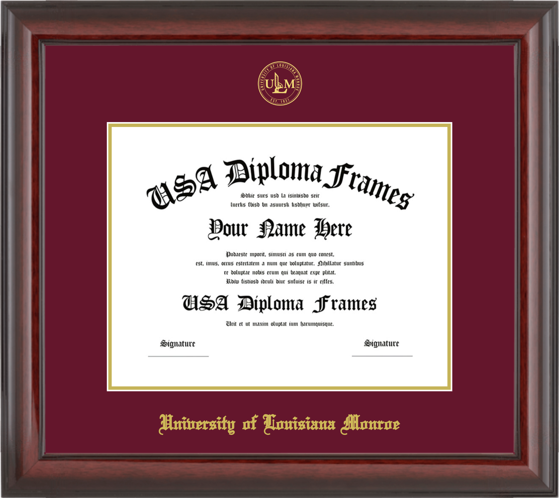 University of Louisiana at Monroe – Single Horizontal Document ( Diploma ) – Cherry Mahogany Glossy – Maroon Mat – Gold Accent Mat – With Seal(University Seal Gold) – With Gold Embossing (University of Louisiana Monroe)
