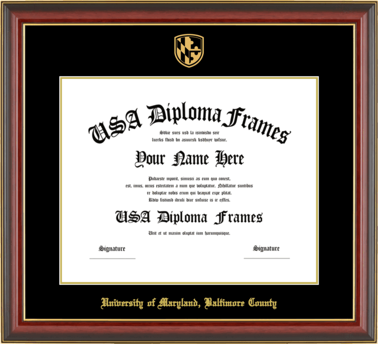 Want to explore more styles? Browse our full range of diploma frame layouts, or visit the University of Maryland, Baltimore County to view options available for your school. Looking for a fully personalized design? Try our custom Frame Builder and create a frame that’s uniquely yours.