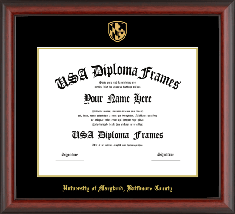 Want to explore more styles? Browse our full range of diploma frame layouts, or visit the University of Maryland, Baltimore County to view options available for your school. Looking for a fully personalized design? Try our custom Frame Builder and create a frame that’s uniquely yours.