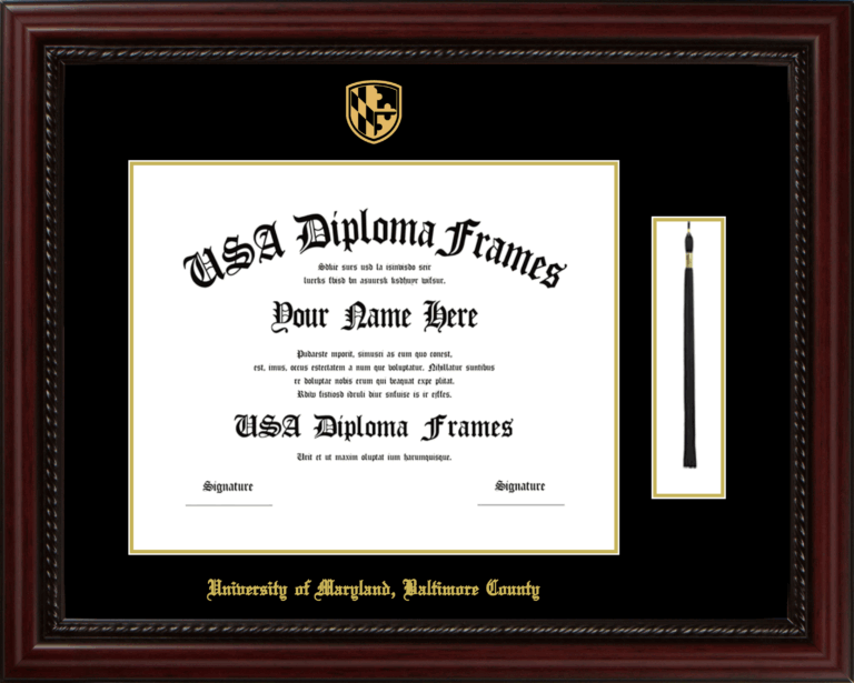 University of Maryland, Baltimore County Diploma Frame with Tassel – Executive Cherry Rope – Black and Gold Mat