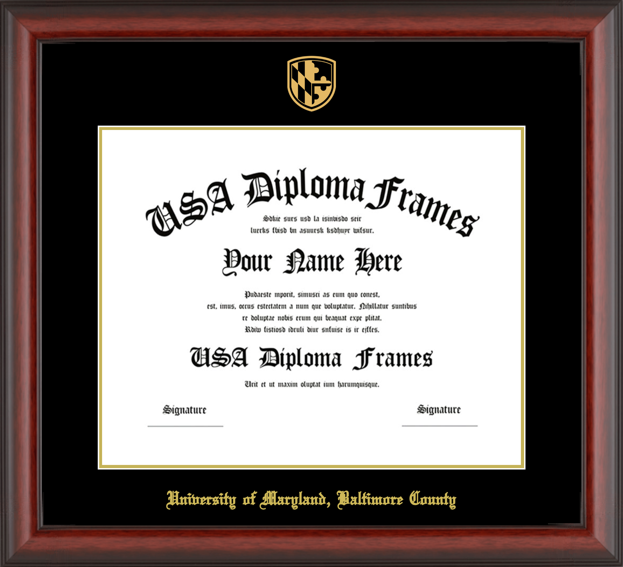 University of Maryland, Baltimore County Diploma Frame – Cherry Mahogany Matte – Black and Gold Mat