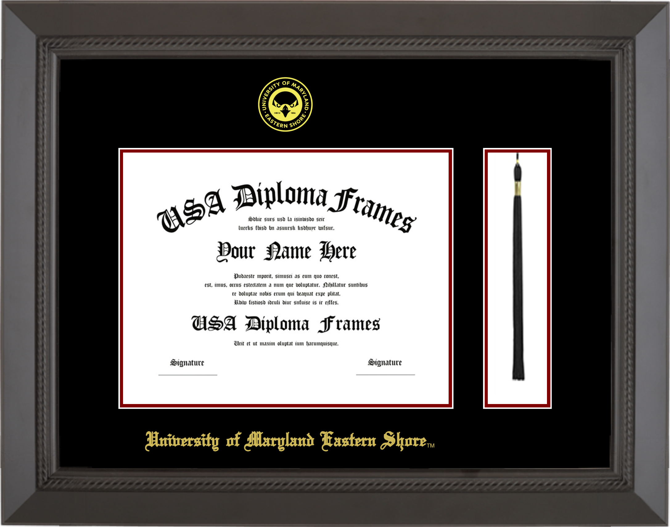 University of Maryland Eastern Shore Diploma Frame with Tassel – Black Rope – Black and Maroon Mat
