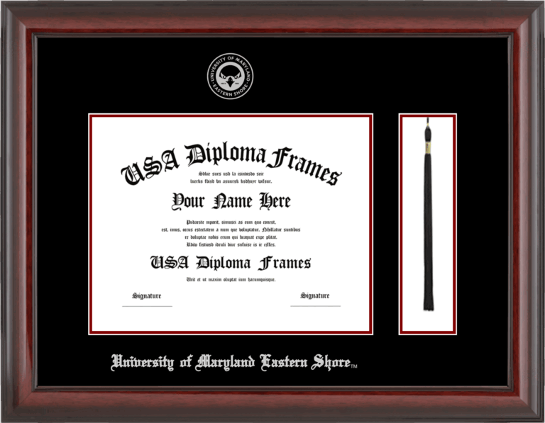 University of Maryland Eastern Shore Diploma Frame with Tassel – Cherry Mahogany Glossy – Black and Maroon Mat – Silver Seal