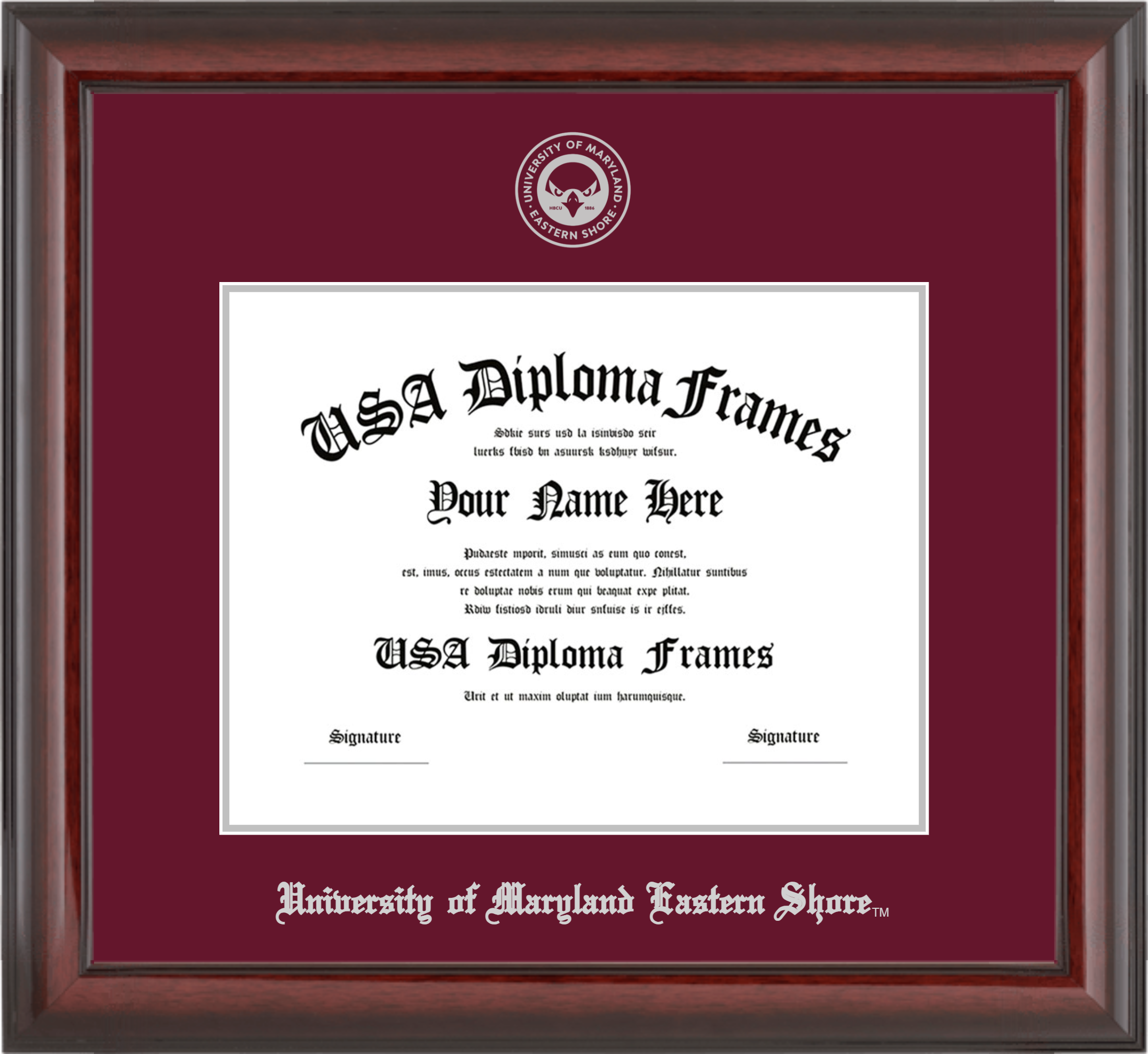 University of Maryland Eastern Shore – Single Horizontal Document ( Diploma ) – Cherry Mahogany Glossy – Maroon Mat – Silver Accent Mat – With Seal(University Seal Silver) – With Silver Embossing (University of Maryland Eastern Shore)
