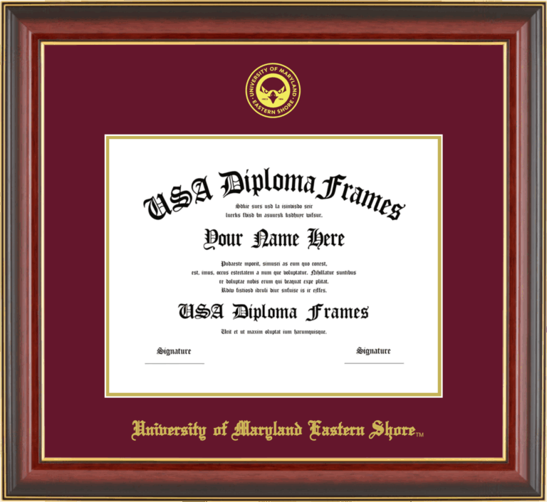 Want to explore more styles? Browse our full range of diploma frame layouts, or visit the University of Maryland Eastern Shore to view options available for your school. Looking for a fully personalized design? Try our custom Frame Builder and create a frame that’s uniquely yours.