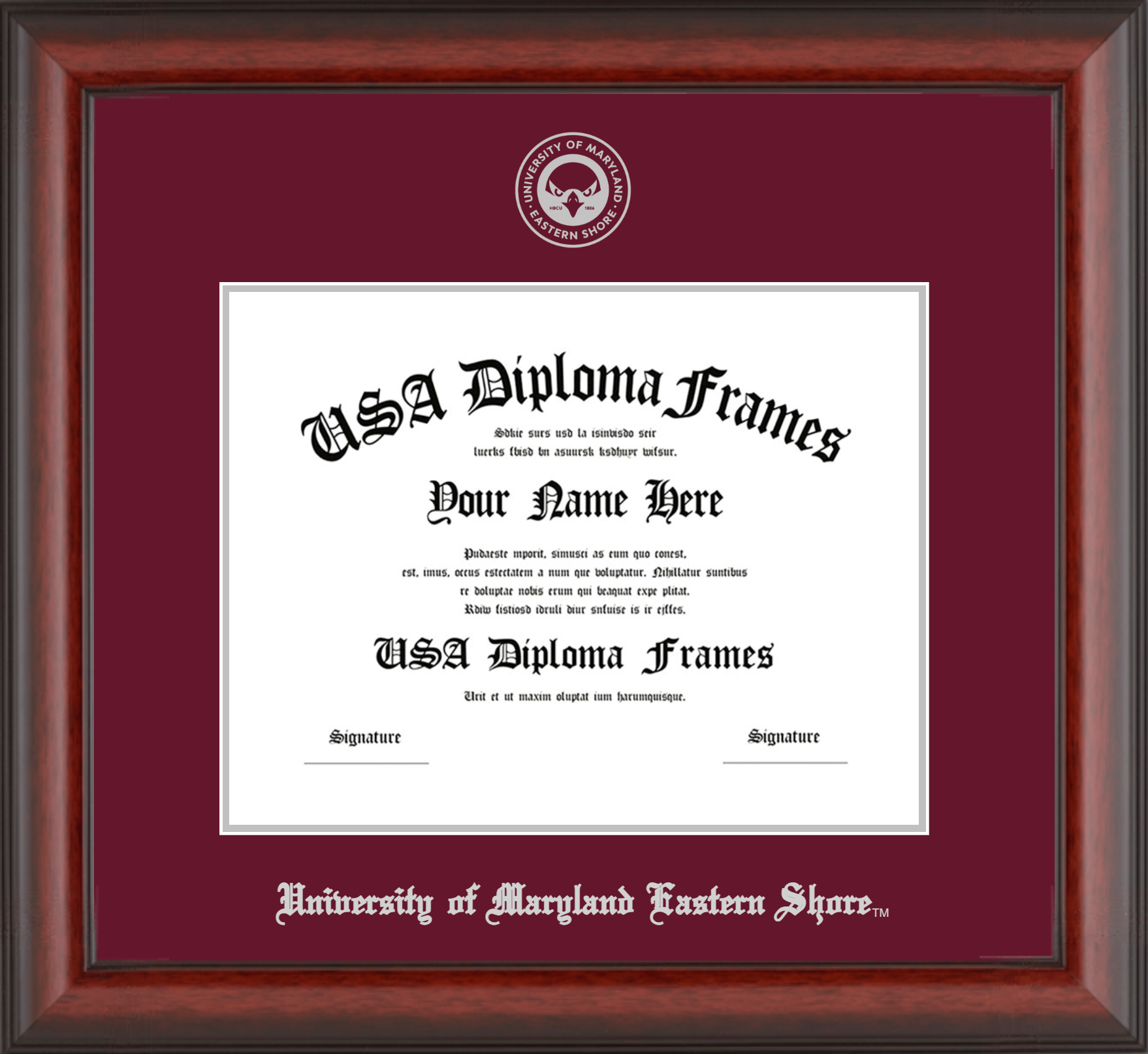 University of Maryland Eastern Shore Diploma Frame – Cherry Mahogany Matte – Maroon and Silver Mat