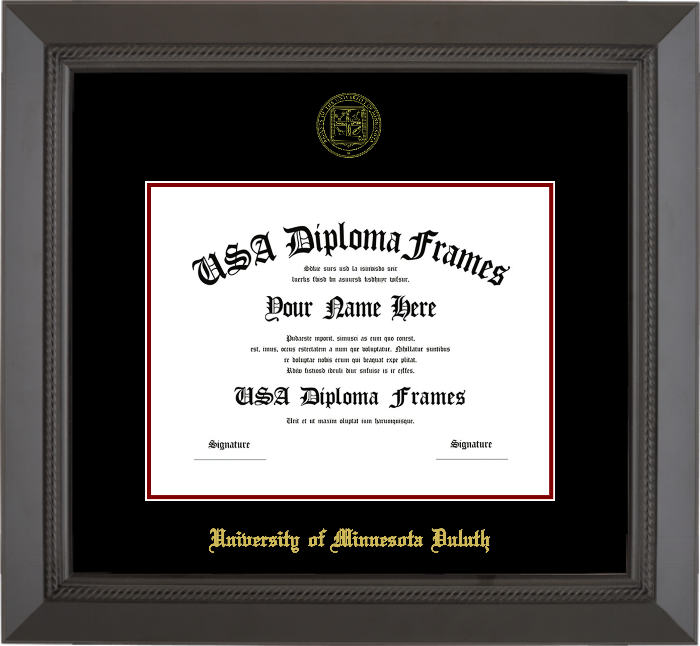 University of Minnesota Duluth Diploma Frame – Black Rope – Black and Maroon Mat