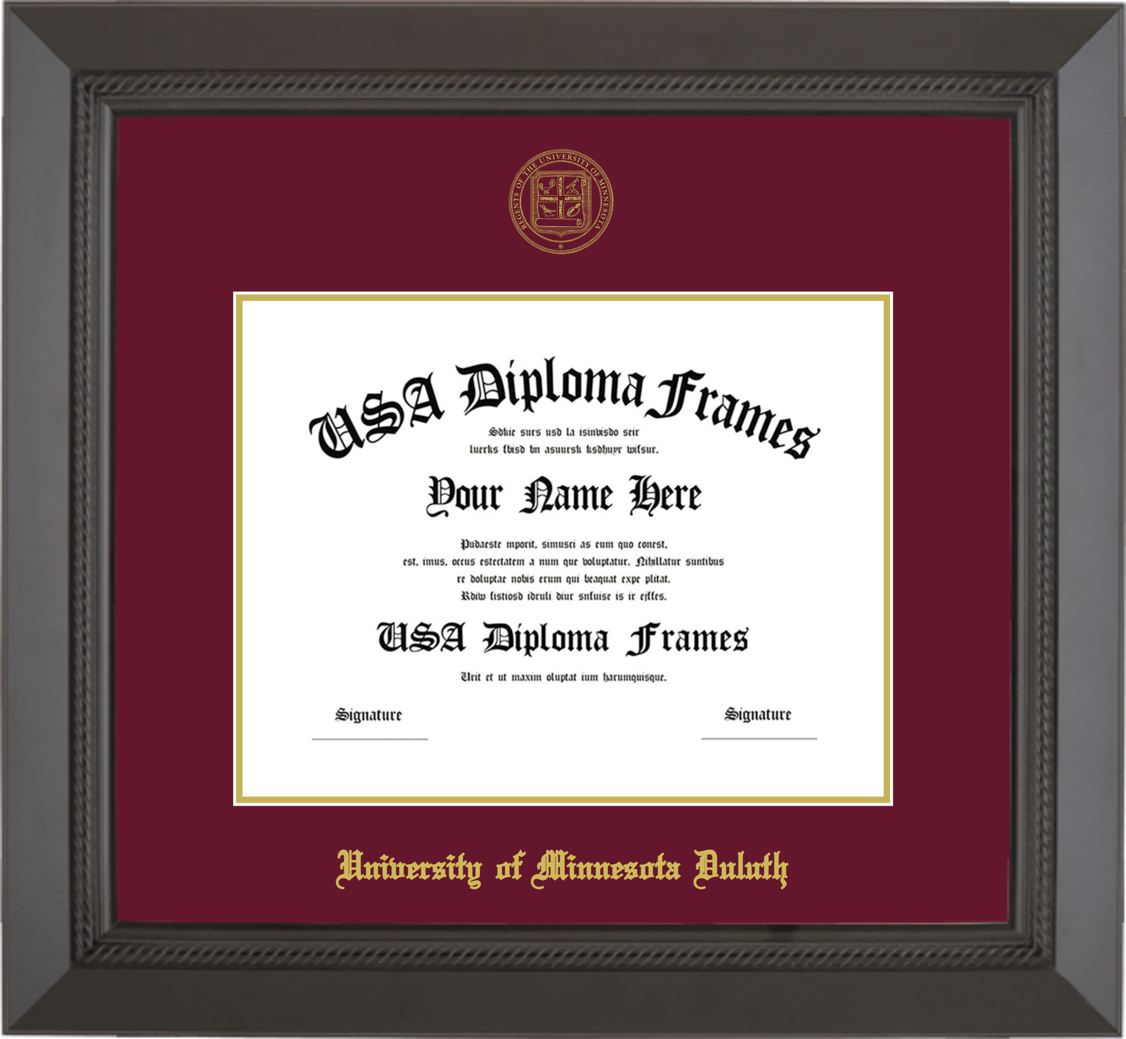 University of Minnesota Duluth Diploma Frame – Black Rope – Maroon and Gold Mat
