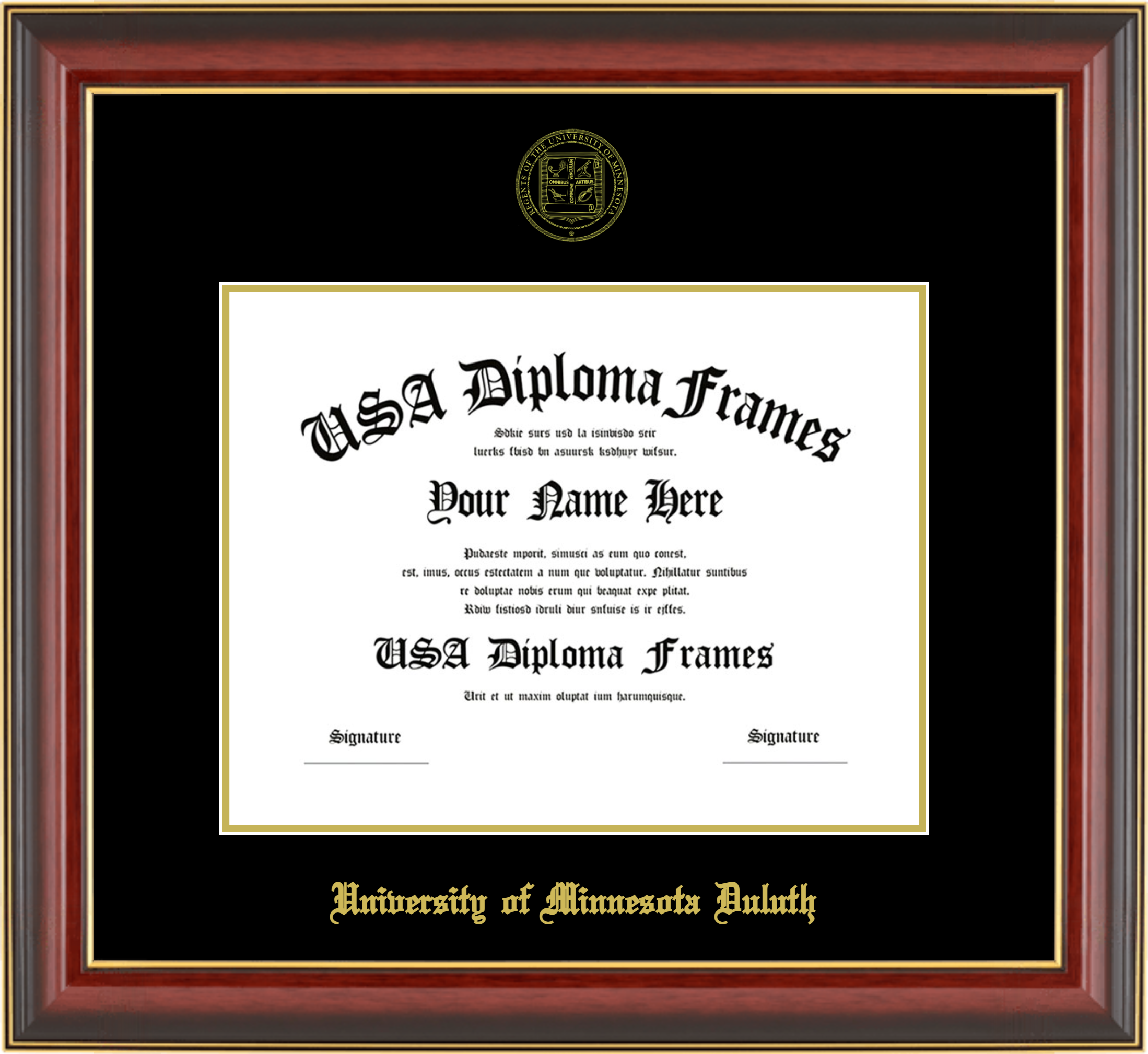 University of Minnesota Duluth Diploma Frame – Cherry Mahogany Gold Trim Glossy – Black and Gold Mat