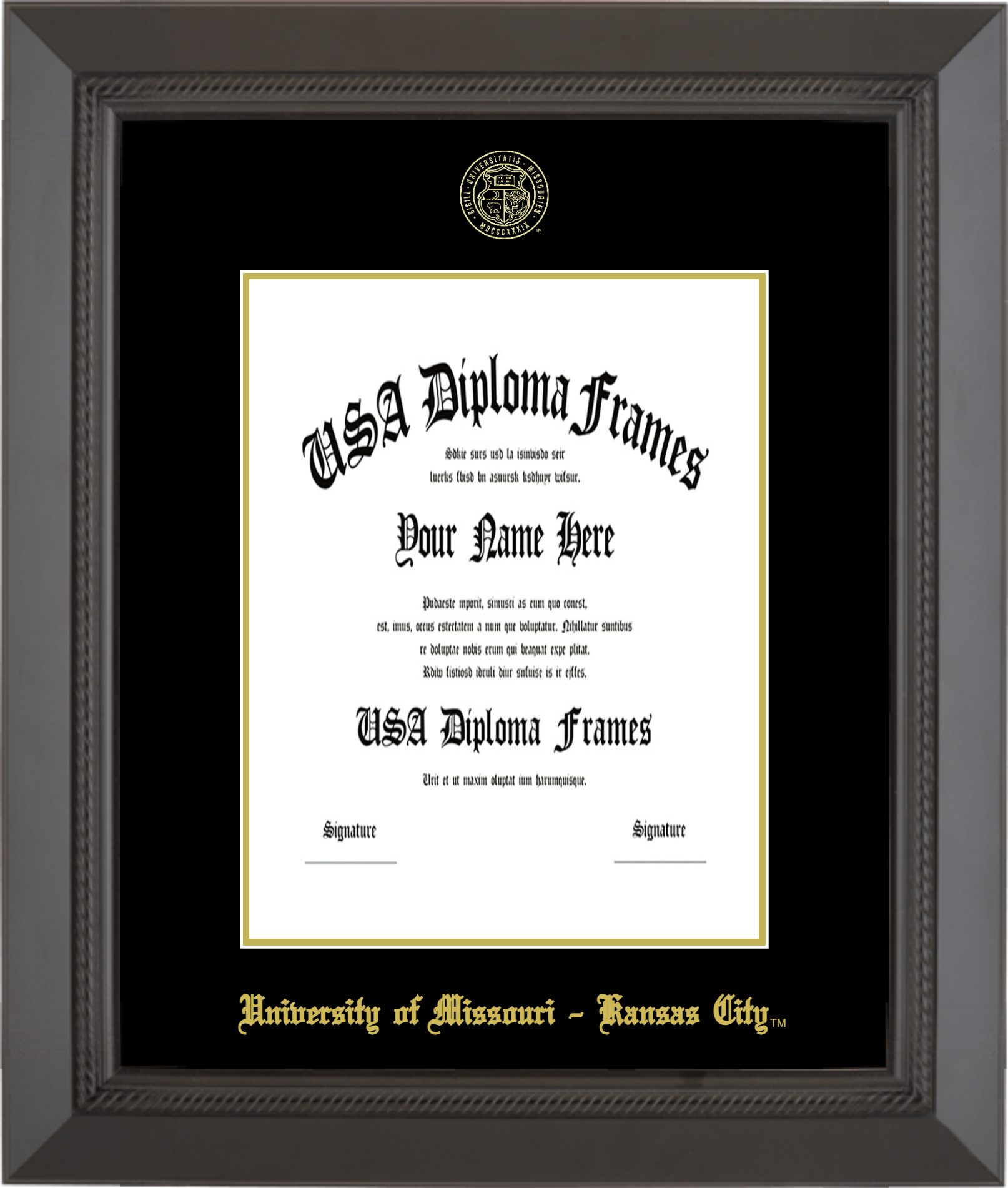 University of Missouri Kansas City Diploma Frame – UMKC – Black Rope – Black and Gold Mat
