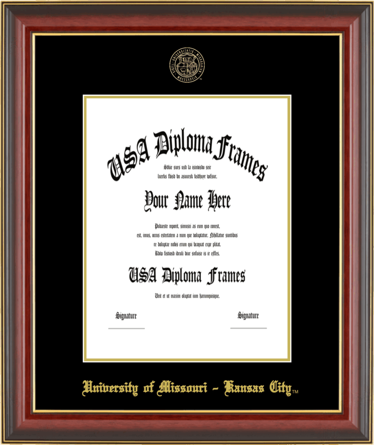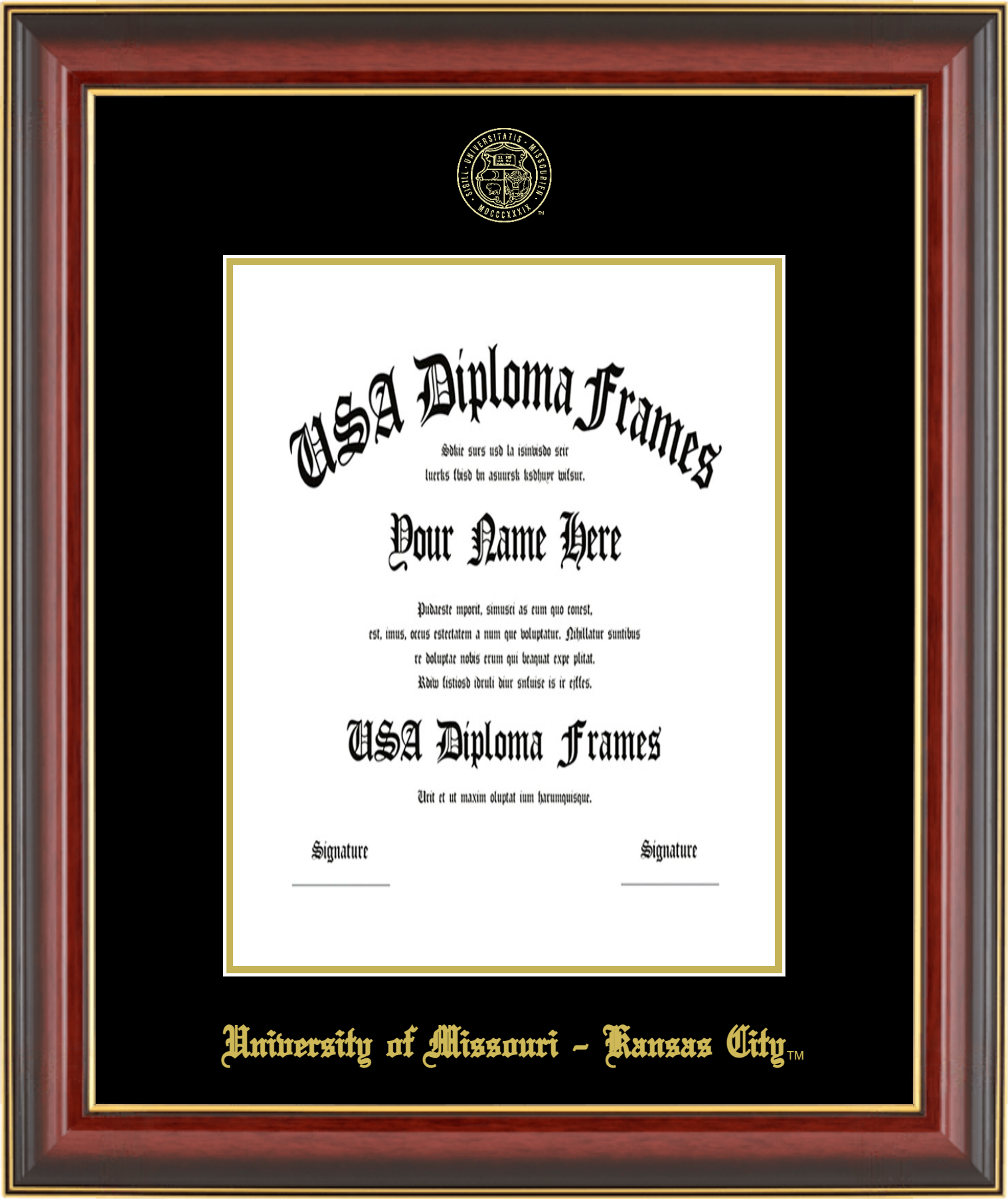University of Missouri Kansas City Diploma Frame – UMKC – Cherry Mahogany Gold Trim Glossy – Black and Gold Mat