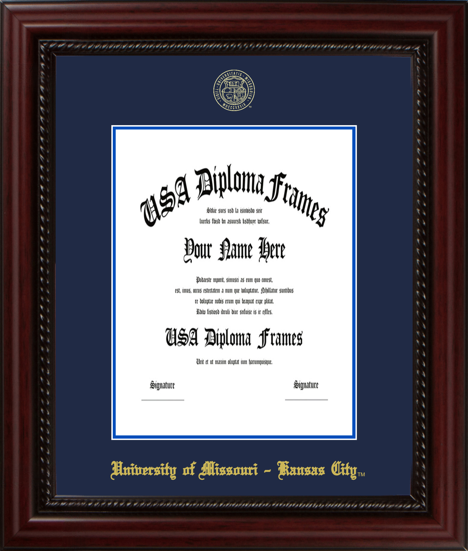 University of Missouri Kansas City Diploma Frame – UMKC – Executive Cherry Rope – Navy and Royal Blue Mat