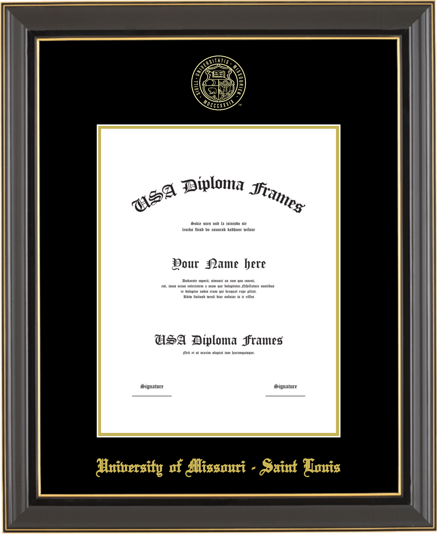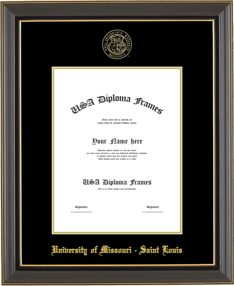 University of Missouri – Saint Louis Diploma Frame – Black Gold Trim Glossy – Black and Gold Mat