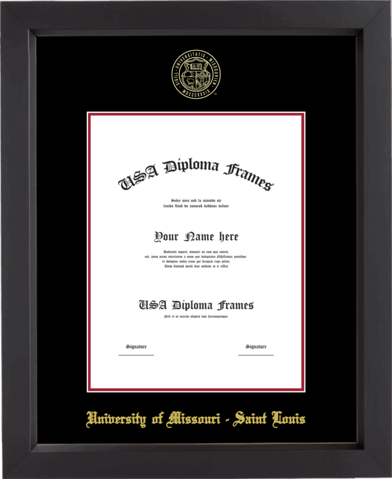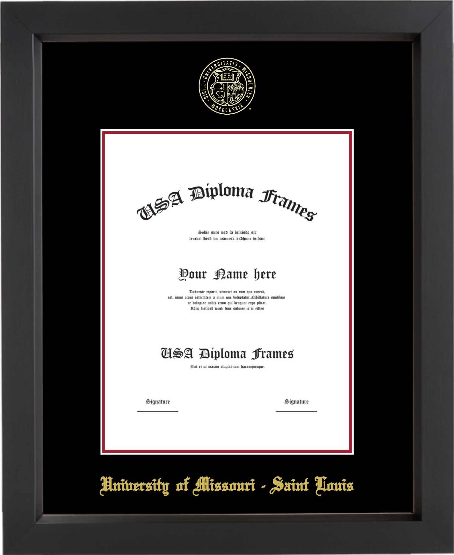 University of Missouri – Saint Louis Diploma Frame – Black Matte – Black and Crimson Mat
