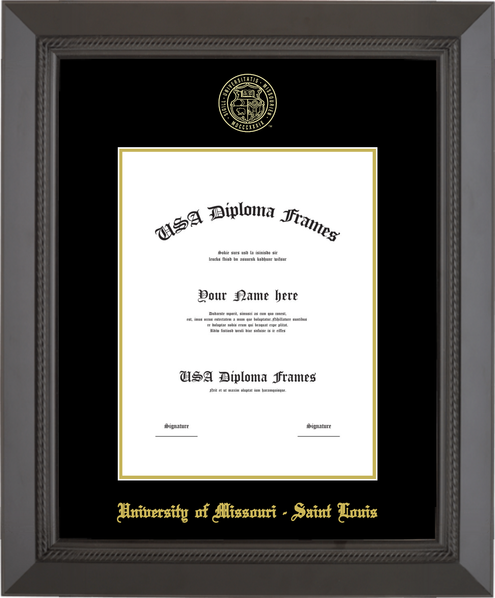 University of Missouri – Saint Louis Diploma Frame – Black Rope – Black and Gold Mat