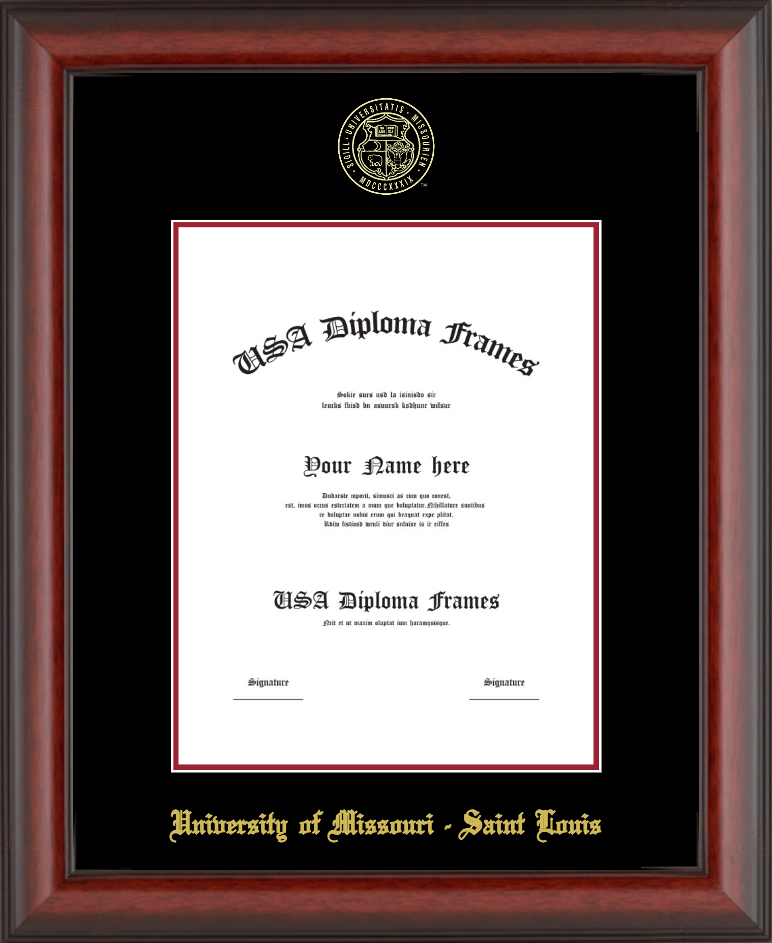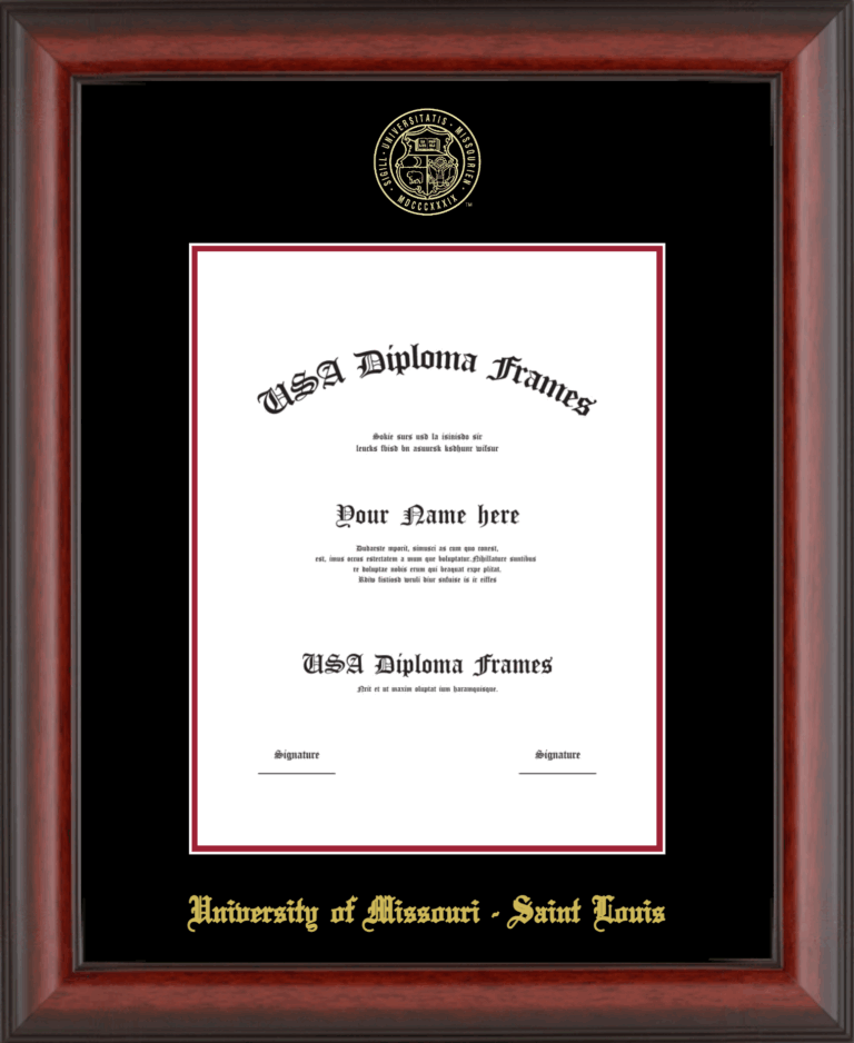 University of Missouri – Saint Louis Diploma Frame – Cherry Mahogany Matte – Black and Crimson Mat