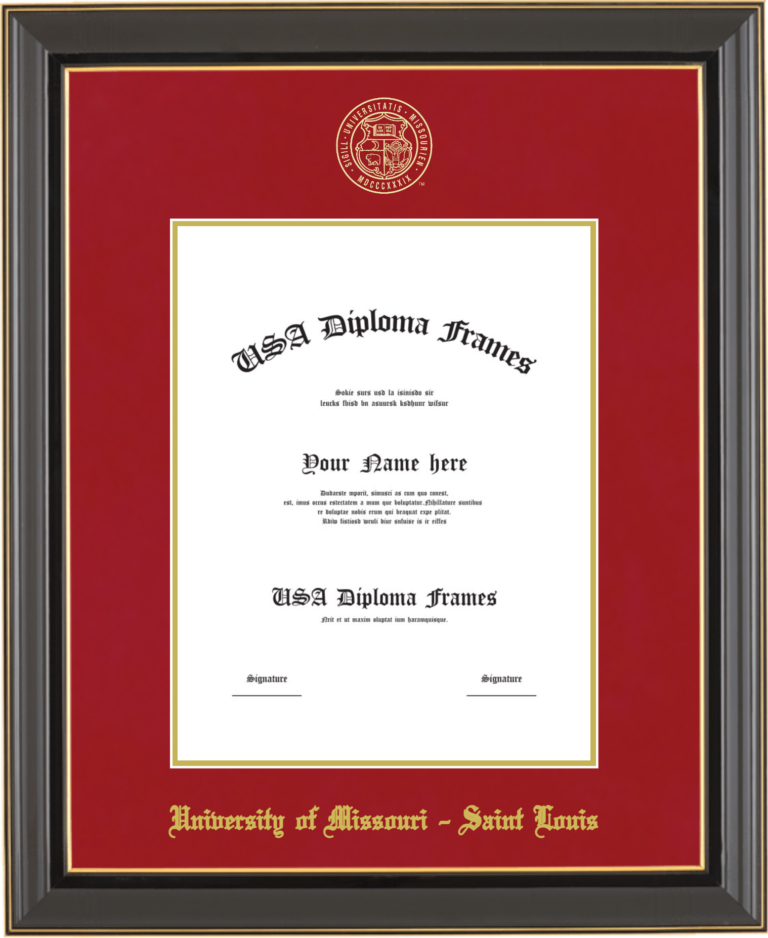 Want to explore more styles? Browse our full range of diploma frame layouts, or visit the University of Missouri - Saint Louis to view options available for your school. Looking for a fully personalized design? Try our custom Frame Builder and create a frame that’s uniquely yours.