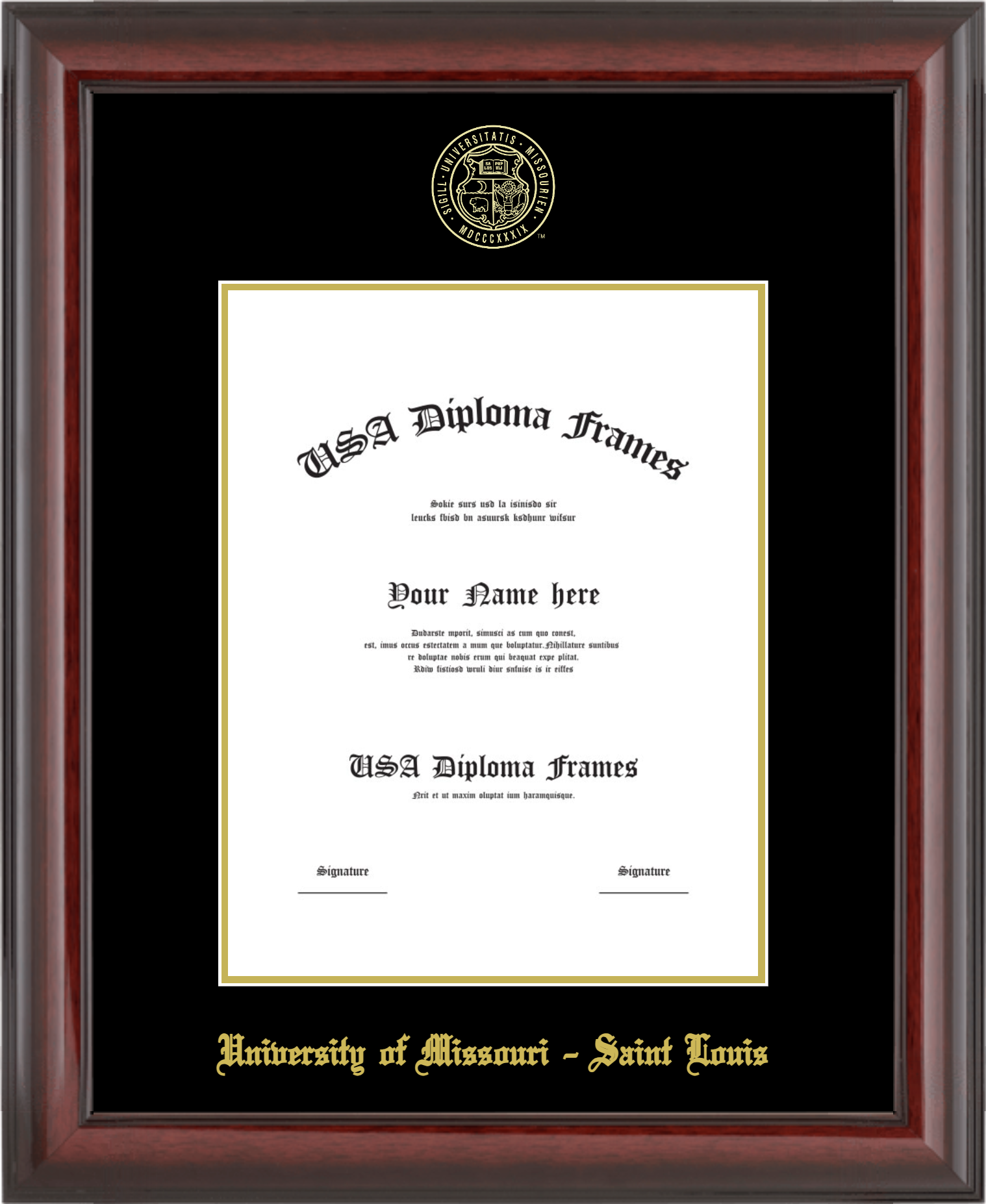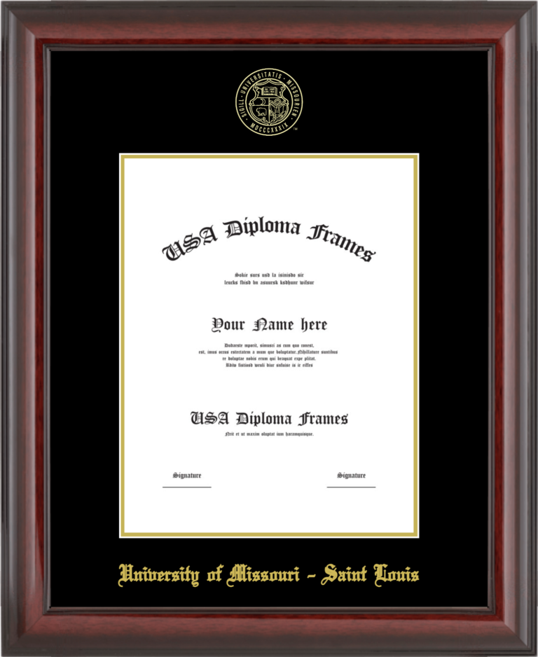 University of Missouri – Saint Louis – Single Vertical Document ( Diploma ) – Cherry Mahogany Glossy – Black Mat – Gold Accent Mat – With Seal(University Seal Gold) – With Gold Embossing (University of Missouri – Saint Louis)
