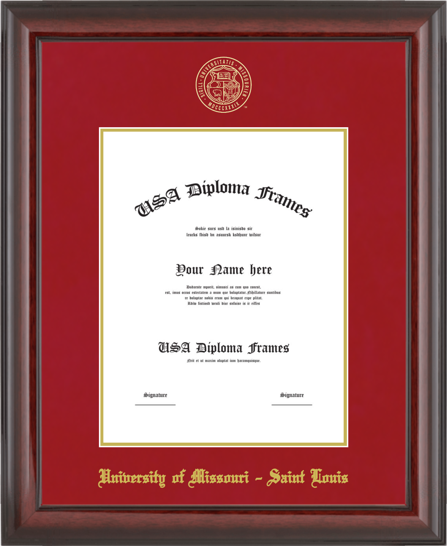 University of Missouri – Saint Louis – Single Vertical Document ( Diploma ) – Cherry Mahogany Glossy – Crimson Mat – Gold Accent Mat – With Seal(University Seal Gold) – With Gold Embossing (University of Missouri – Saint Louis)