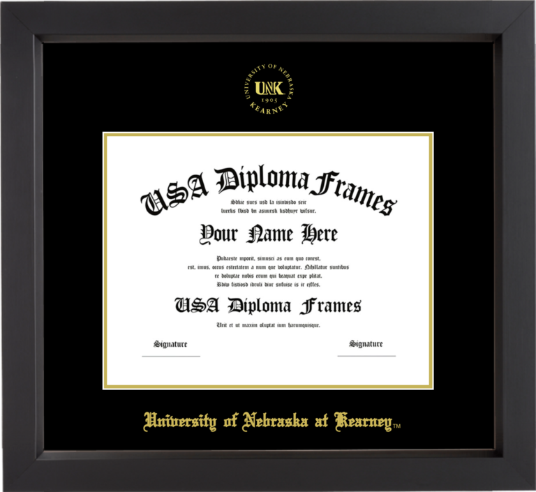 University of Nebraska at Kearney Diploma Frame – Black Matte – Black and Gold Mat