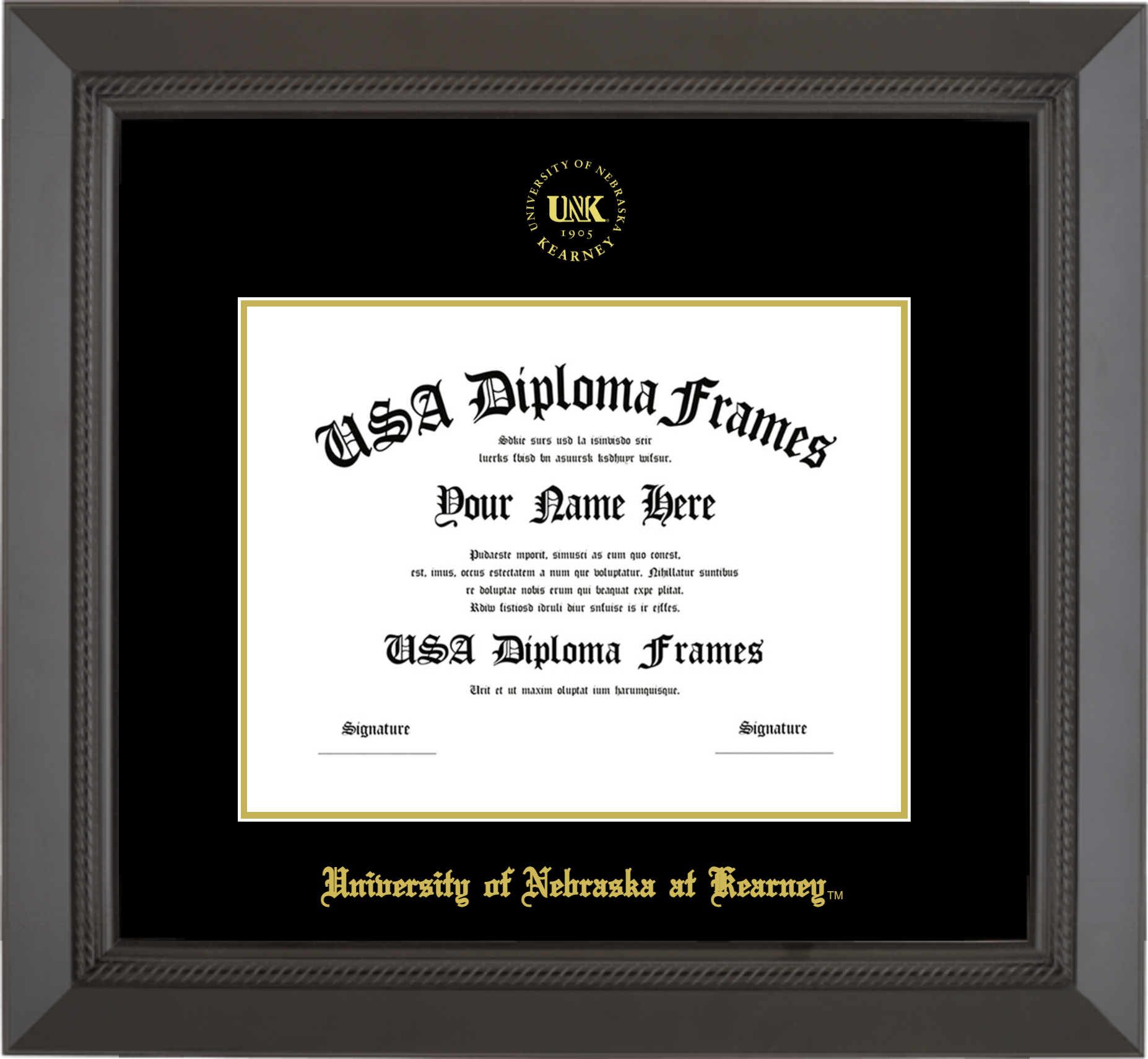 University of Nebraska at Kearney Diploma Frame – Black Rope – Black and Gold Mat