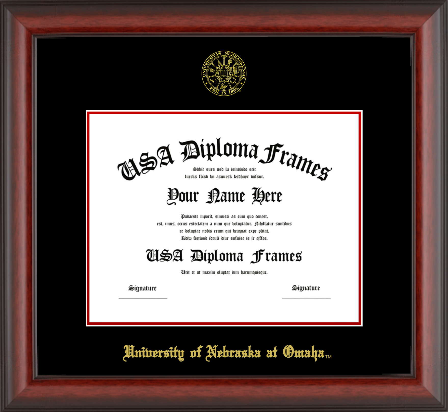 University of Nebraska at Omaha – Single Horizontal Document ( Diploma ) – Cherry Mahogany Matte – Black Mat – Red Accent Mat – With Seal(University Seal Gold) – With Gold Embossing (University of Nebraska at Omaha)
