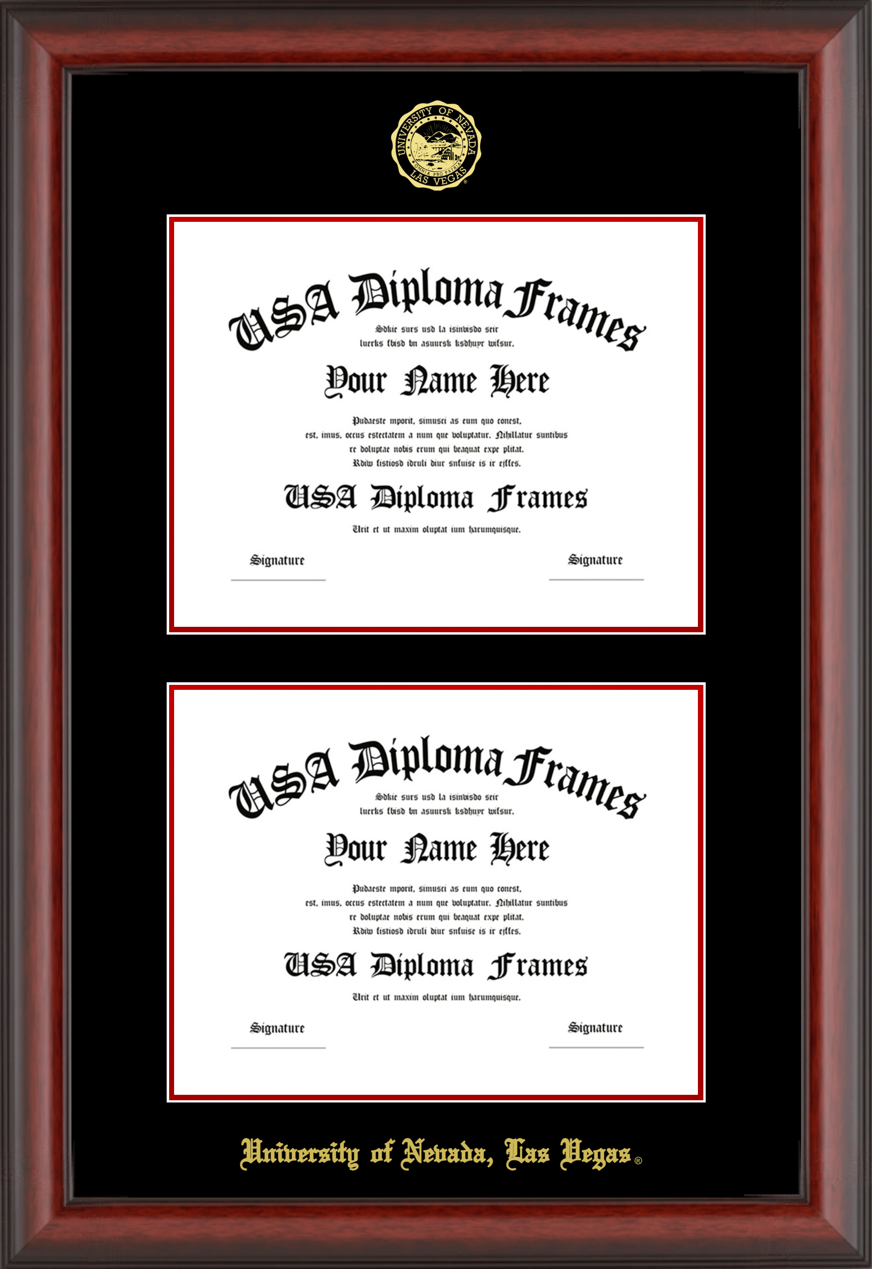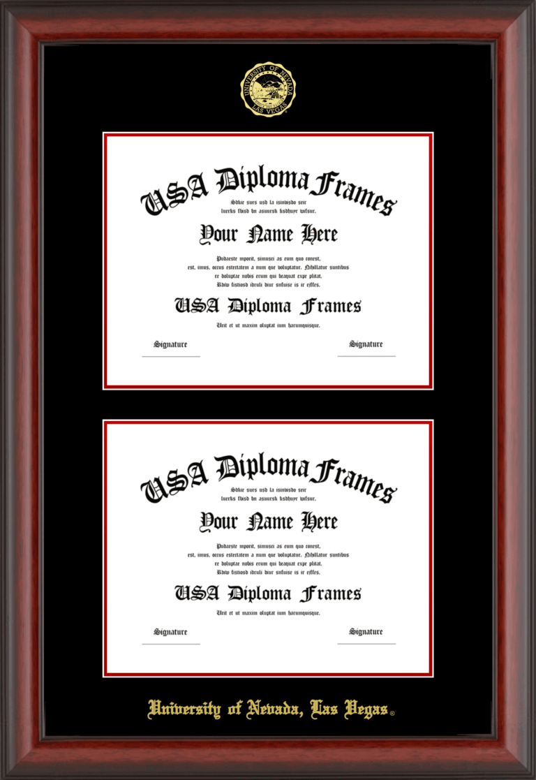University of Nevada, Las Vegas UNLV Double Diploma Frame – Double Document – Cherry Mahogany Matte – Black and Red Mat