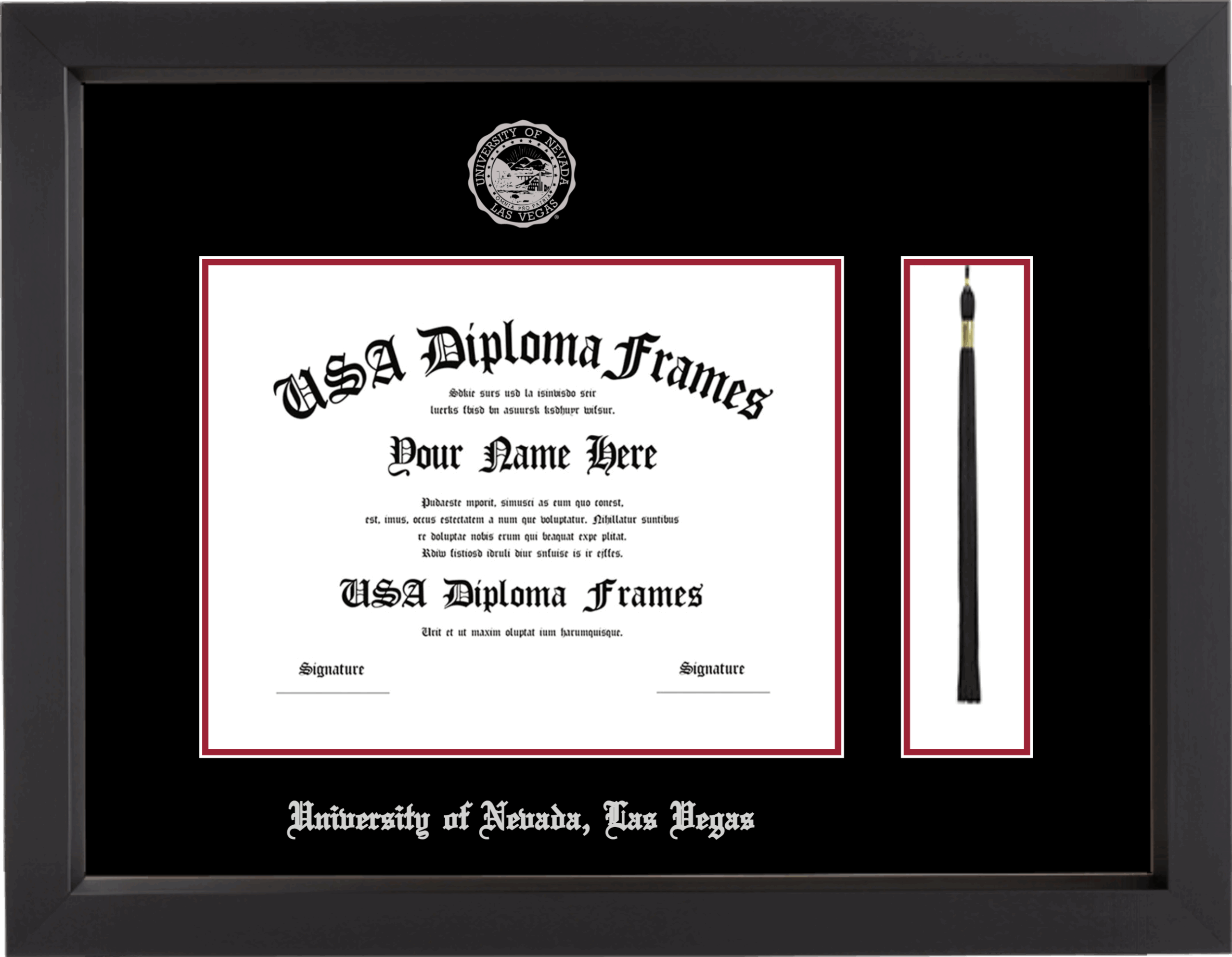 University of Nevada, Las Vegas Diploma Frame with Tassel – Black Matte – Black and Crimson Mat